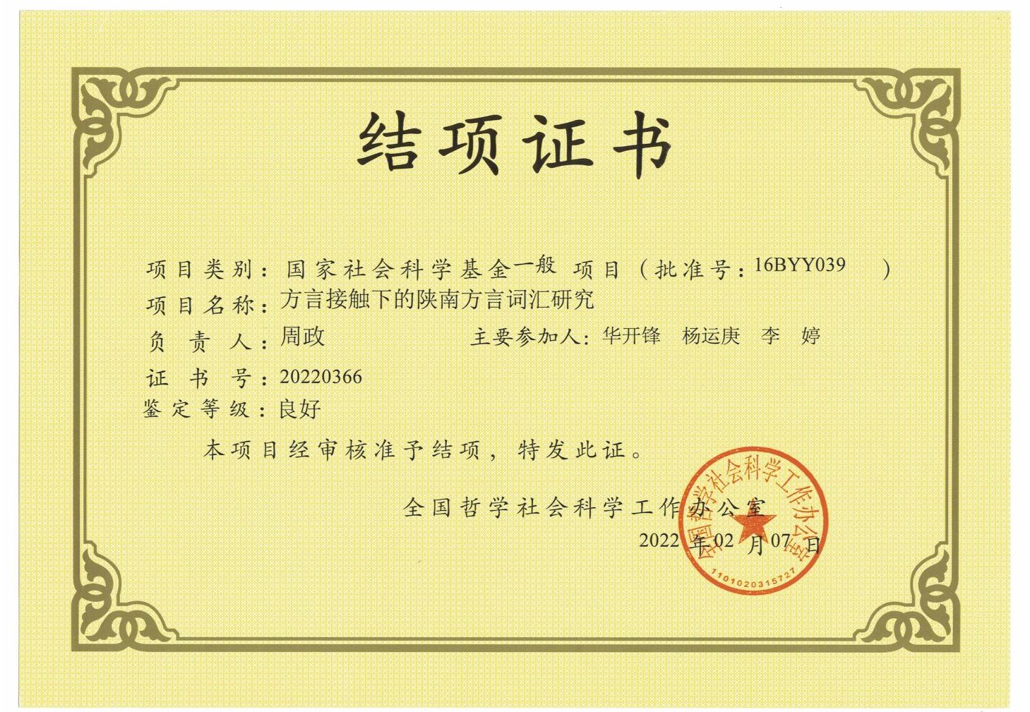 导航痕迹 首页 > 团队队伍 > 教师风采 > 正文 团队概况 教师简介 兼职教授 教师风采 李春平专栏 国家社科基金项目——方言接触下的陕南方言词汇研究顺利结题 来源:太阳成tyc122cc集团太阳成tyc122cc集团 发布日期:2022年06月07日 阅读次数: