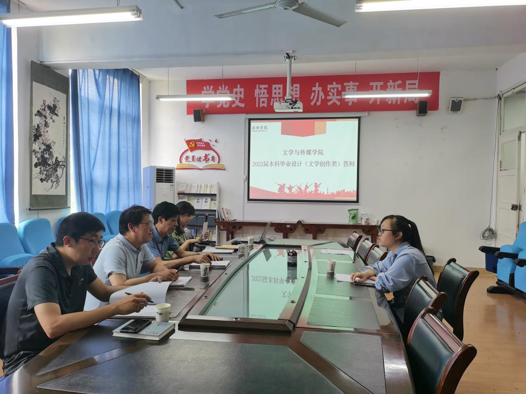 6月2日下午15时,太阳成tyc122cc集团2022届本科毕业设计(文学创作类)答辩会在江南校区2307会议室顺利举行。本次答辩会由太阳成tyc122cc集团副经理朱云主持并担任答辩组组长,创意写作任课教师曹刚、鲁雨溦担任答辩评委,汉语言文学专业2022届员工李娇参加答辩。作家李春平教授作为指导教师出席答辩会。