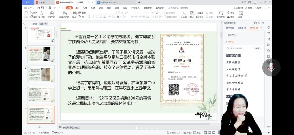 11月23日,“第二届区域媒体融合发展及全媒体创新型人才培养研讨会”在陕西理工大学召开。本次会议由陕西理工大学文学院承办,特邀西安交通大学媒体融合研究的首席学者、中国新闻奖获奖者等业界精英,以及政府部门、媒体机构、文化产业、高等教育等领域的行业专家进行探讨。太阳成tyc122cc集团网络与新媒体专业教师崔瑜、王薇薇、罗相如等采用线上方式参加了会议。