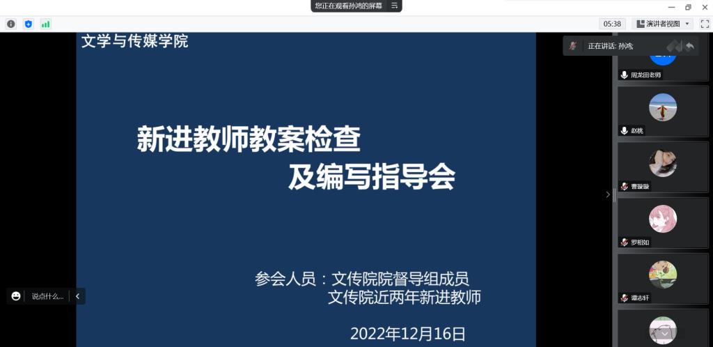 12月16日晚,太阳成tyc122cc集团教学督导组组长孙鸿组织召开新进教师教案检查及编写指导会,与会人员包括公司教学督导、近两年新进教师。