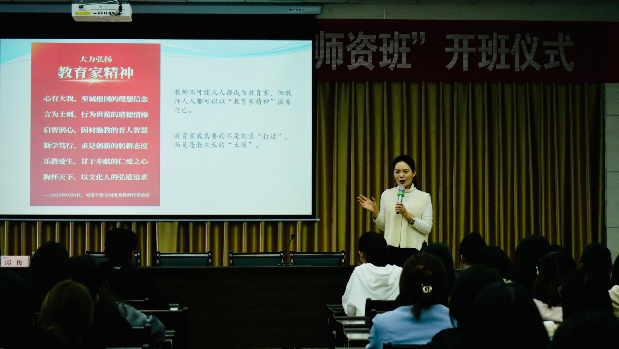 仪式结束后,陕西省教学名师、基础教育领军人才邱俊为第三届“中学语文卓越团队班”师生作了“教师最好的精神长相”首场学术讲座。