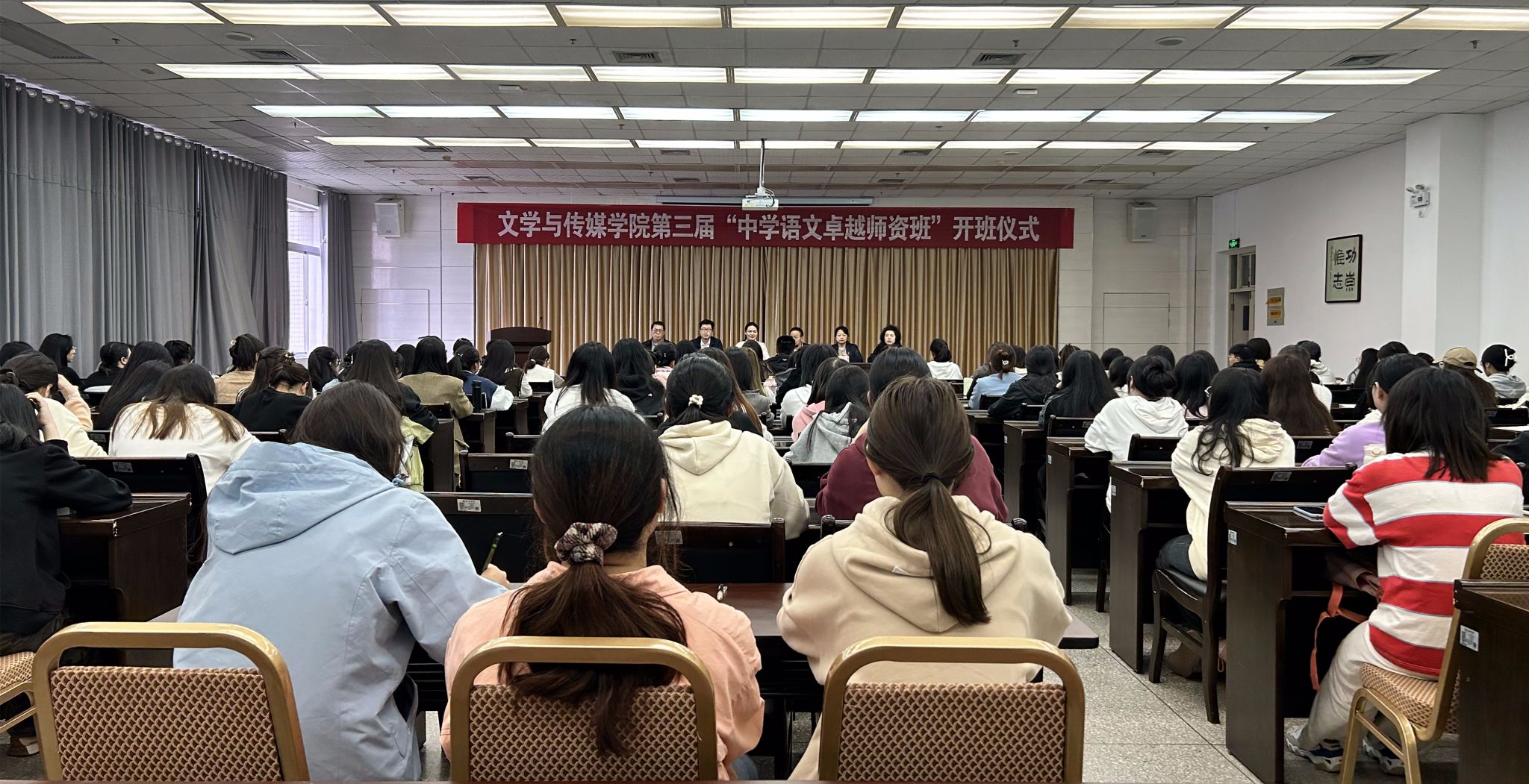 太阳成tyc122cc集团经理杨运庚宣读了《太阳成tyc122cc集团“中学语文卓越团队班”人才培养计划行动方案》,对“中学语文卓越团队班”人才培养计划的指导思想、总体目标、措施要求和保障机制进行了解读,强调它是构造汉语言文学专业师范教育新形态,实现人才培养质量升级的重要举措,要求第三届“中学语文卓越团队班”在总结前两届经验的基础上,全面规范活动组织和内容设计,希望入选员工从师德师风、教学技能、育人方法和教学研究等方面全面提高师范生素养,将自己锤炼成真正的中学语文卓越教师。
