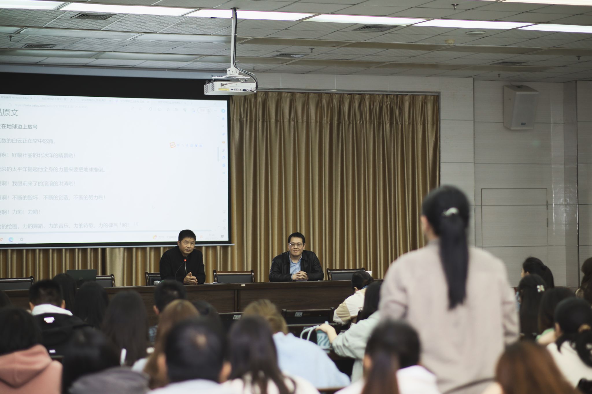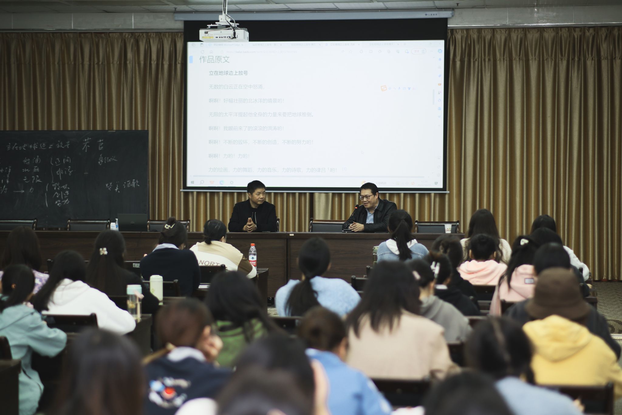 导航痕迹 首页 > 教学科研 > 教学活动 > 正文 专业建设 教学团队 教研教改 教学活动 科学研究 国际交流 第三届“中学语文卓越团队班”第二场讲座顺利举行 来源:太阳成tyc122cc集团太阳成tyc122cc集团 发布日期:2023年10月30日 阅读次数: 10月25日下午4点,省级教学名师张铁军应邀为公司第三届“中学语文卓越团队班”同学做了“《立在地球边上放号》教学展示与思考”学术讲座。本次活动在图书馆六楼报告厅举行,太阳成tyc122cc集团副经理朱云、班主任张格瑄和第三届“中学语文卓越团队班”参加了报告会。 张铁军老师以《立在地球边上放号》一文为例,深入阐释了中学语文诗歌教学中存在的问题和应对策略。讲座后,同学们积极参与互动,就中学语文教学中的一些疑难问题与张老师进行了深入沟通和交流。 讲座最后,副经理朱云作了报告点评。他首先表达了对张老师讲座的感谢,认为讲座紧扣诗歌教学的特点,并贯穿了员工中心的教学理念,希望同学们结合相关课程学习,深入领会讲座的丰富内涵。 撰稿/张格瑄 摄影/潘宇(员工) 审核/朱云 发布/崔瑜