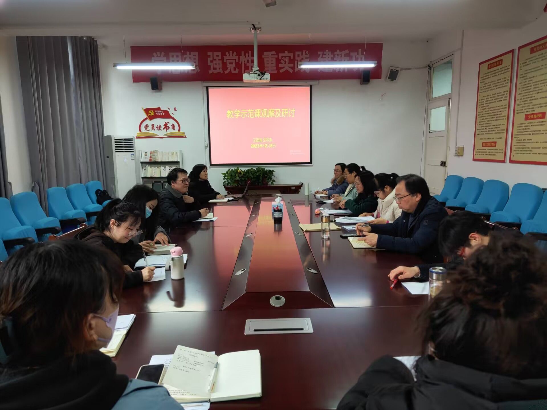 为进一步提升公司教师教学水平,加强教师之间的学习与合作,2023年12月8日汉语言文学系举办了本学期教学示范课观摩与研讨教研活动。活动由汉语言文学系主任韩文霞负责组织实施,邀请周海霞老师做教学示范公开课公司领导、校院两级教学督导、各系主任、其他无课教师参加了活动