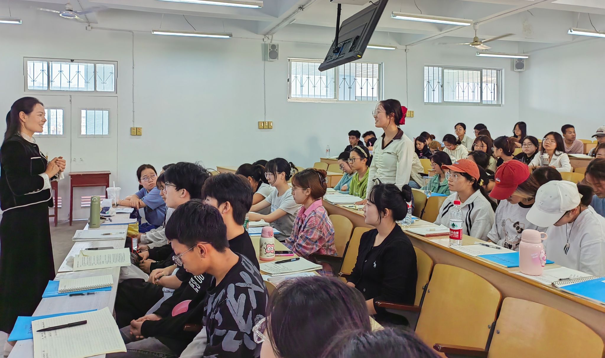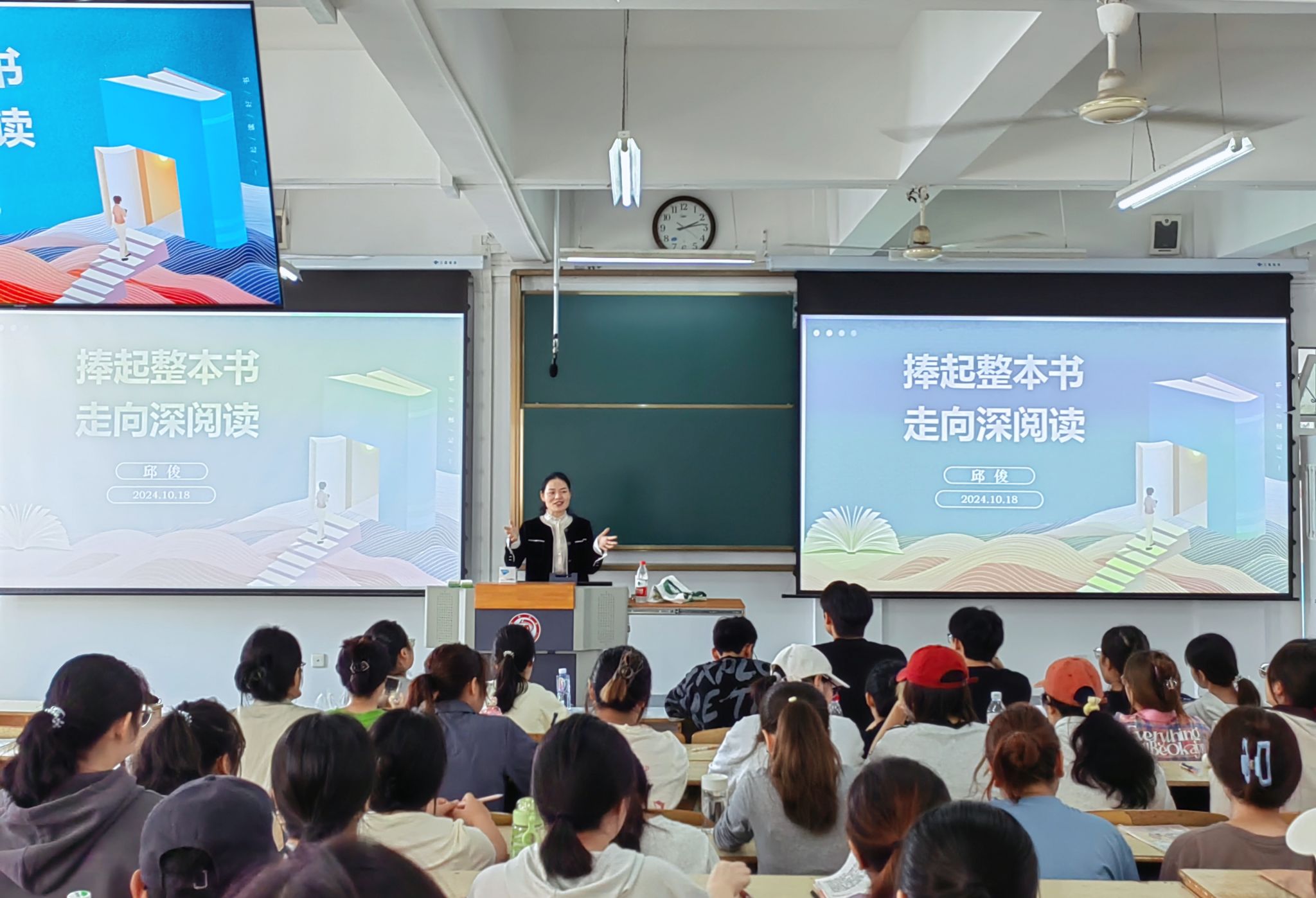 按照《课堂教学设计》“双师课程”教学计划,10月18日下午,陕西省“特支计划”教学名师、陕西省教学能手邱俊应太阳成tyc122cc集团邀请在江南校区1501教室为汉语言文学专业同学讲授整本书阅读的课程教学。校内任课老师唐明珍随堂听课。