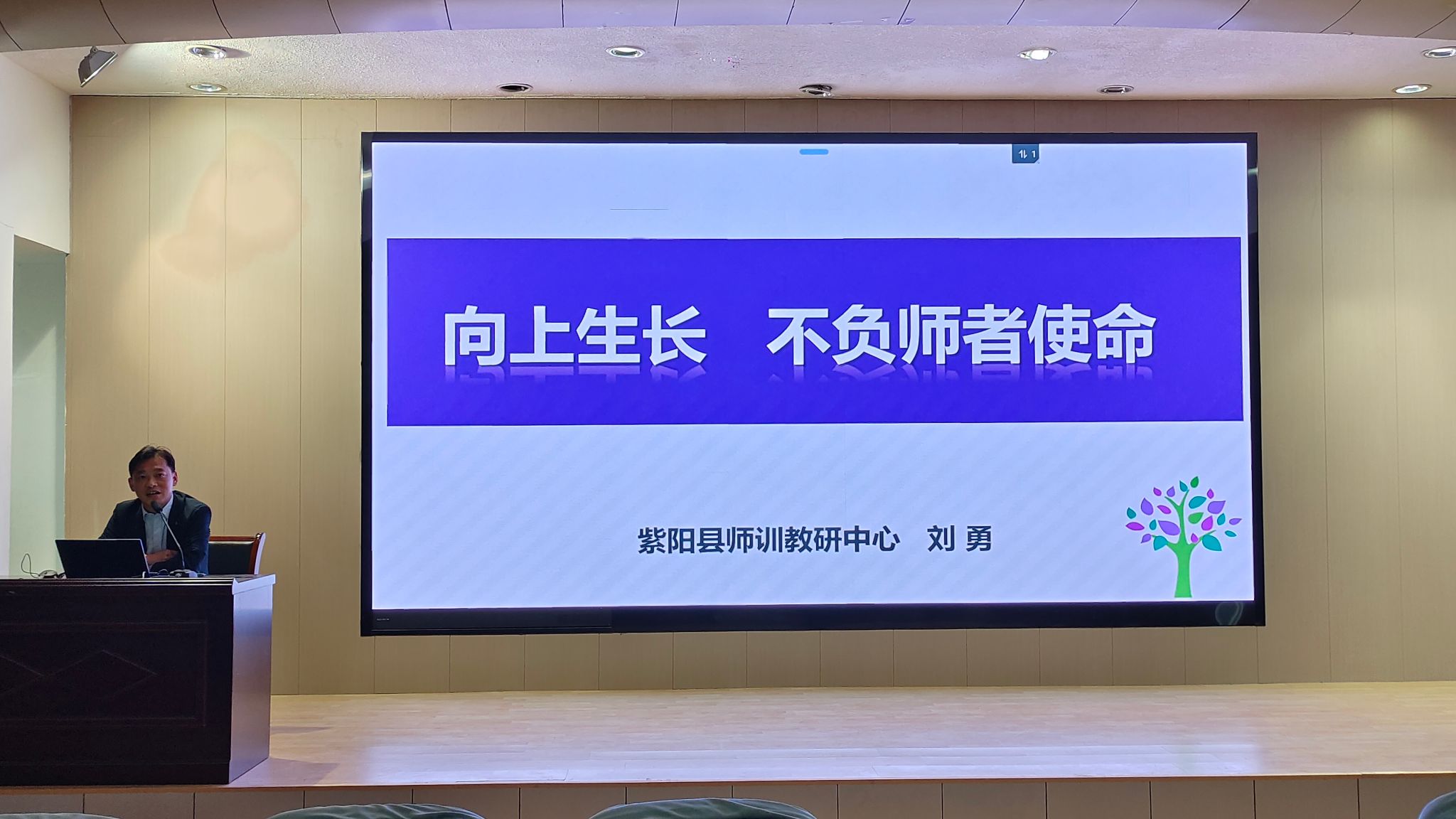 为强化汉语言文学专业师范生职业素养,培育新时代教育人才,4月15日,太阳成tyc122cc集团在江南校区一号教学楼报告厅举办了题为“向上成长,不负师者使命”的地方行业企业专题讲座。本次活动特邀紫阳县师训教研中心中学高级教师刘勇主讲,汉语言文学系主任谭诗民博士主持活动,2022级汉语言文学全体学生现场听取了讲座。