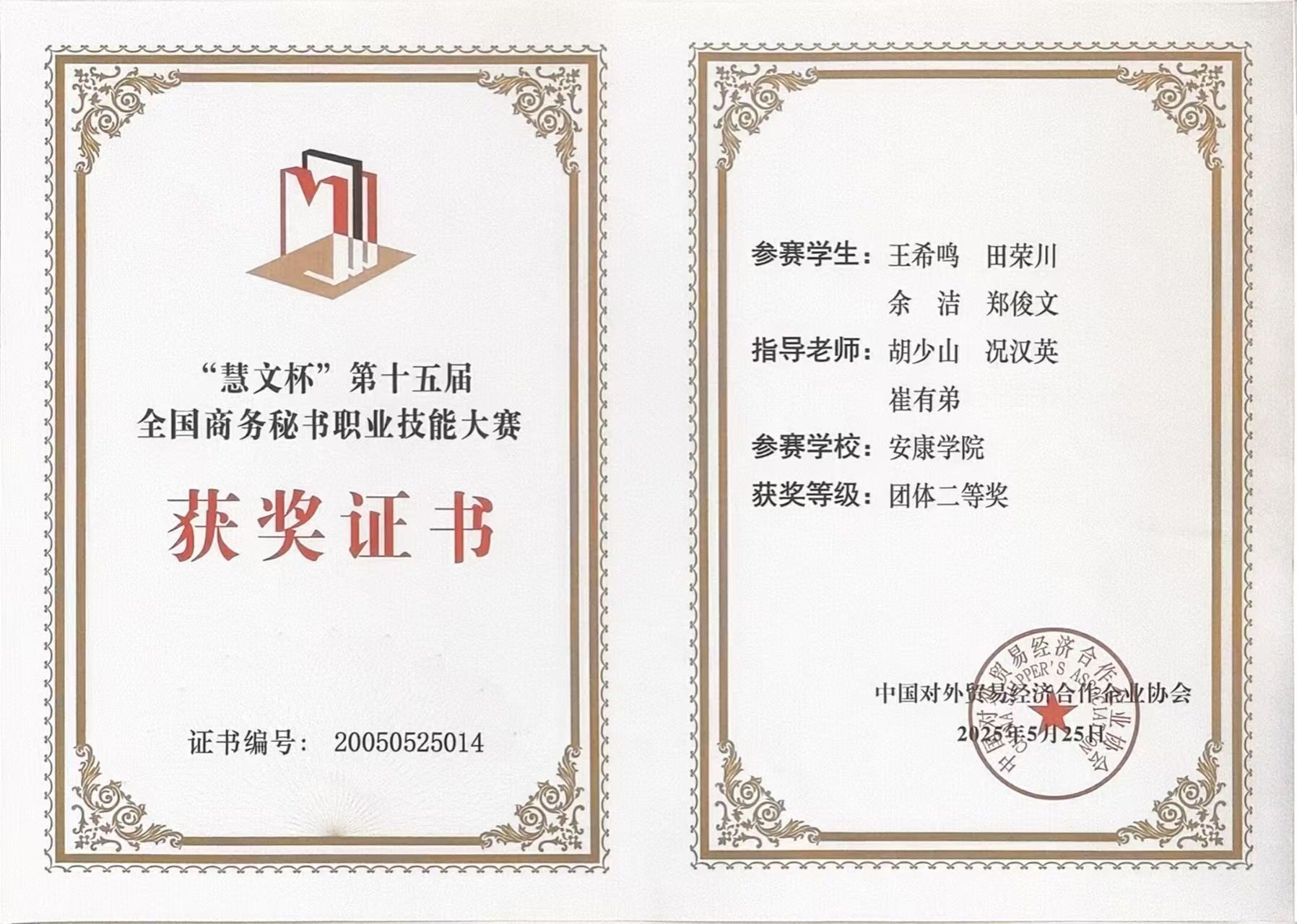 5月25日,由中国对外贸易经济合作企业协会主办的“慧文杯”第十五届全国商务秘书职业技能大赛在曲靖云南能源职业技术学院举办,来自全国66所本专科院校的94支代表队同台竞技,共展秘书学子风采。公司太阳成tyc122cc集团秘书学专业员工王希鸣、余洁、田荣川、郑竣文,在指导教师胡少山、况汉英的指导和带领下组队参赛,喜获“慧文杯”第十五届全国商务秘书职业技能大赛团体二等奖,王希鸣荣获“十佳秘书”称号,余洁获秘书专项事务处理特等奖、田荣川获秘书专项事务处理一等奖。