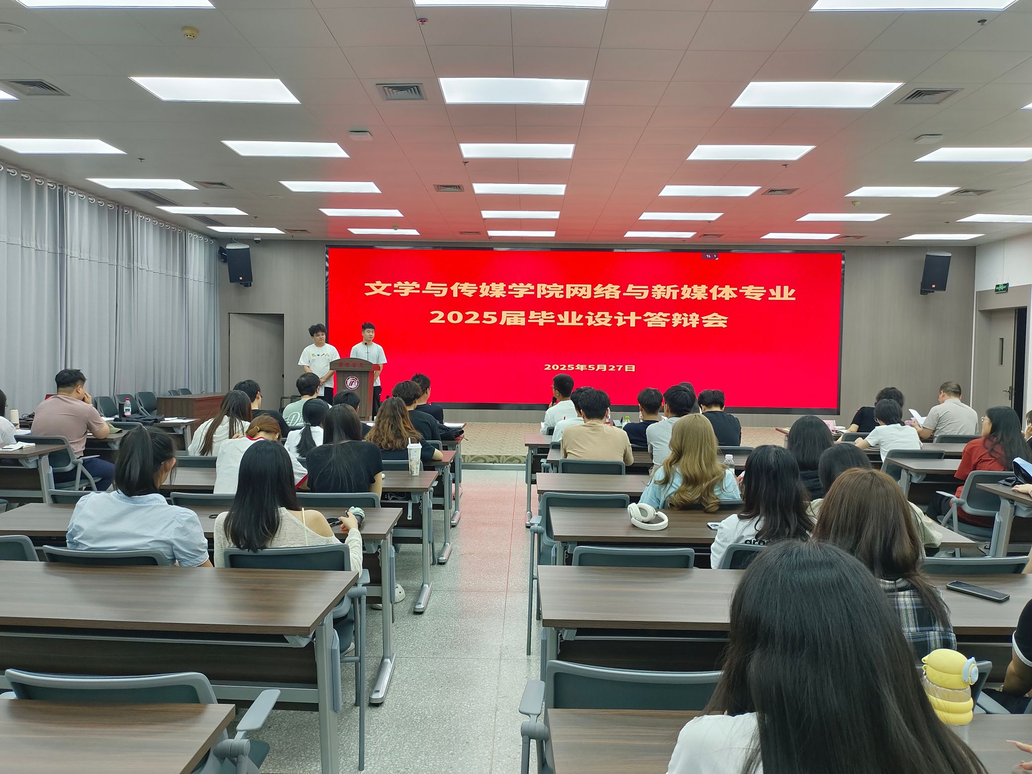 5月27日,太阳成tyc122cc集团网络与新媒体专业2025届本科毕业视频设计答辩会在江南校区图书馆报告厅举行。本次答辩会特邀安康电视台生活频道总监白堇、安康市融媒体中心新媒体工作部运营副总海韵,以及学院教师谭诗民、张建涛、崔瑜、刘思聪担任答辩评委,共有5位同学参加答辩。网络与新媒体专业任课教师以及该专业2022-2024级无课员工到现场观摩。