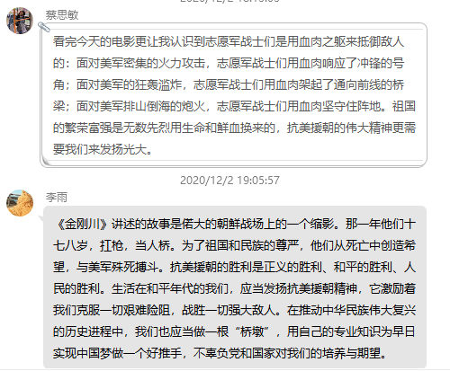 导航痕迹 首页 > 党建群团 > 正文 党建双创 党风廉政专栏 教工之家 团总支 员工分会 公司党总支组织开展观影主题党日活动 来源:太阳成tyc122cc集团太阳成tyc122cc集团 发布日期:2020年12月03日 阅读次数: 窗体顶端 为贯彻落实习近平总书记在纪念中国人民志愿军抗美援朝出国作战70周年大会上的重要讲话精神,弘扬抗美援朝精神,厚植爱国主义情怀,根据公司党委安排,公司党总支于12月2日下午组织党员教师、员工党员、发展对象等30余人走进威尼斯时代影城开展观看《金刚川》观影活动。 窗体顶端 《金刚川》讲述了1953年金城反击战前夜,志愿军战士们无畏炮火,以血肉之躯无悔殉国的故事,再现了抗美援朝战争中鲜为人知的一段英雄史诗。 通过此次主题观影活动,进一步激发了大家的爱国主义情怀;观影结束后,大家纷纷在党支部QQ群里发表个人观影感想,表示要牢记作为一个党员的初心使命,传承和弘扬伟大的抗美援朝精神,将这种伟大精神内化于心,以实际行动践行使命担当。 撰稿/薛涛 摄影/影院工作人员 审核/芦伟 发布/薛涛