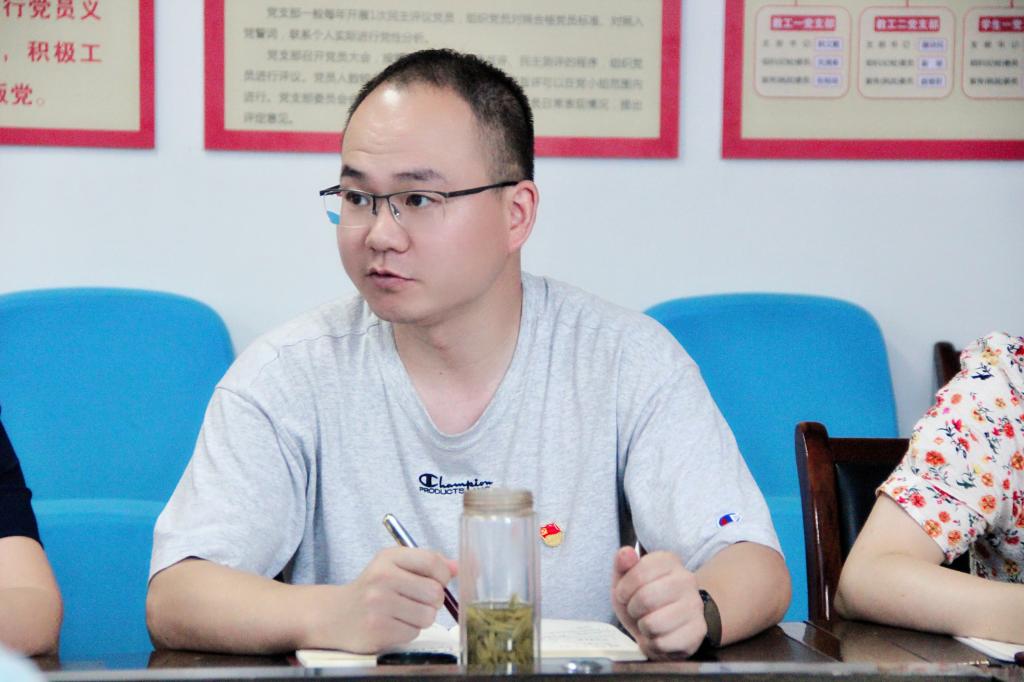 在研讨交流发言中,教工第一党支部孙鸿老师和教工第二党支部谭诗民老师先后分享了自己的感悟。