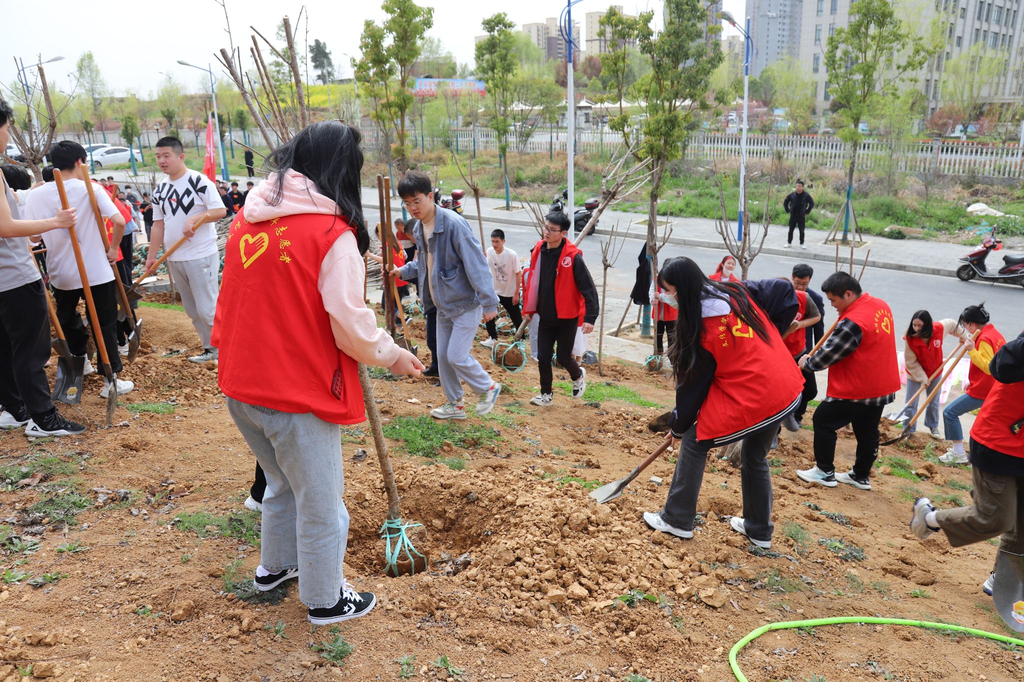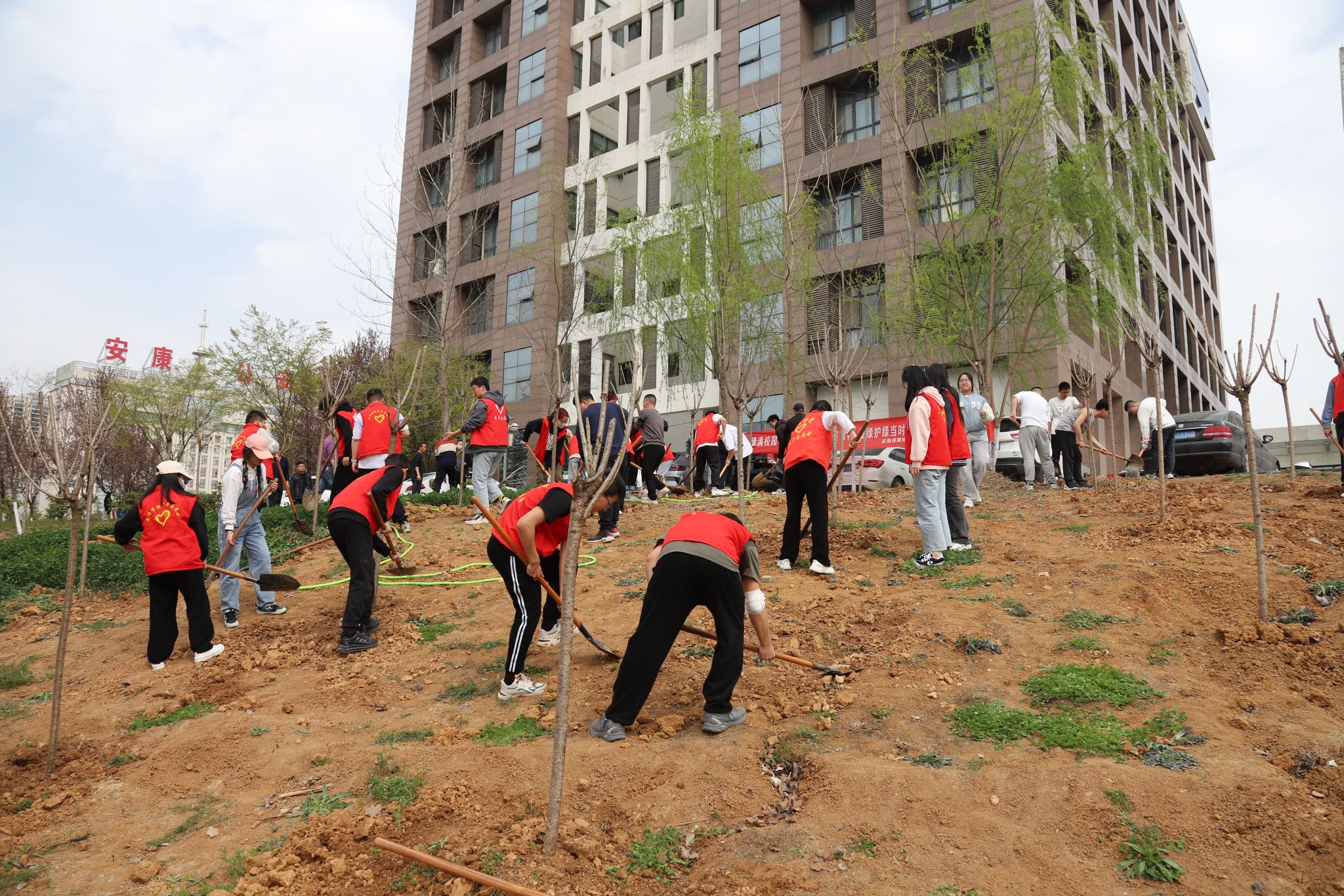 导航痕迹 首页 > 党建群团 > 正文 党建双创 党风廉政专栏 教工之家 团总支 员工分会 太阳成tyc122cc集团员工党支部组织开展春季义务植树主题党日活动 来源:太阳成tyc122cc集团 发布日期:2023年03月16日 阅读次数: 为深入践行“两山”理念,引领员工做生态文明建设的实践者、推动者。3月15日下午,太阳成tyc122cc集团员工党支部联合学校后勤保障处、经管学院、农生学院在江北校区开展春季义务植树活动。后勤保障处相关领导老师、农生师生代表、经管学院师生代表及太阳成tyc122cc集团员工党员、积极分子共计200余人参与本次植树活动。 在后勤处老师进行简单培训讲解后,党员同志们发扬不怕苦、不怕累的劳动精神,以最饱满的热情投入到活动当中。大家相互配合、干劲十足,挥铲挖坑、搬运树苗、扶树填土、压实浇水,每一环节都精心对待、一丝不苟,一派热火朝天的忙碌景象。 经过两个多小时的辛勤劳动,栽下的一棵棵树苗迎风而立,为校园新增了一抹绿色,在春日里展现出勃勃生机;同时也将绿色发展理念、艰苦奋斗精神“种”进了每一位党员干部心中。大家都表示,将会持续发挥好党员的先锋模范作用,通过实际行动,为贯彻落实生态文明建设贡献青春力量。 撰稿/艾佳新 照片/王新宇、刘丁瑗 审核/杨海蓉 发布/薛涛