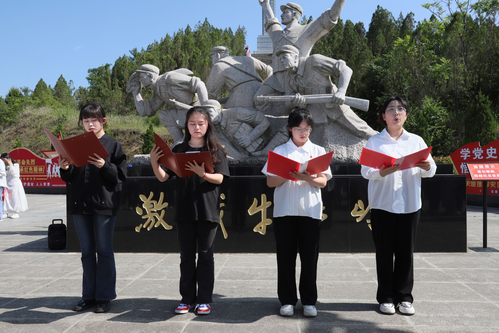 通过讲解员讲解,大家深入了解了牛蹄岭战役的背景和过程,深刻认识到战争烽火年代先烈们的革命精神和英雄气概。陈兴艳同学带领全体党员重温了入党誓词。在革命纪念广场,参加主题活动的同学献上了以“请党放心 强国有我 为主题的诗歌朗诵会。他们用铿锵有力的声音,朗诵着革命先烈们的事迹和英勇事迹,现场气氛肃穆庄严。大家心潮澎湃,纷纷表示要以革命先烈为榜样,发扬革命精神,为实现中华民族伟大复兴的中国梦而不懈奋斗。