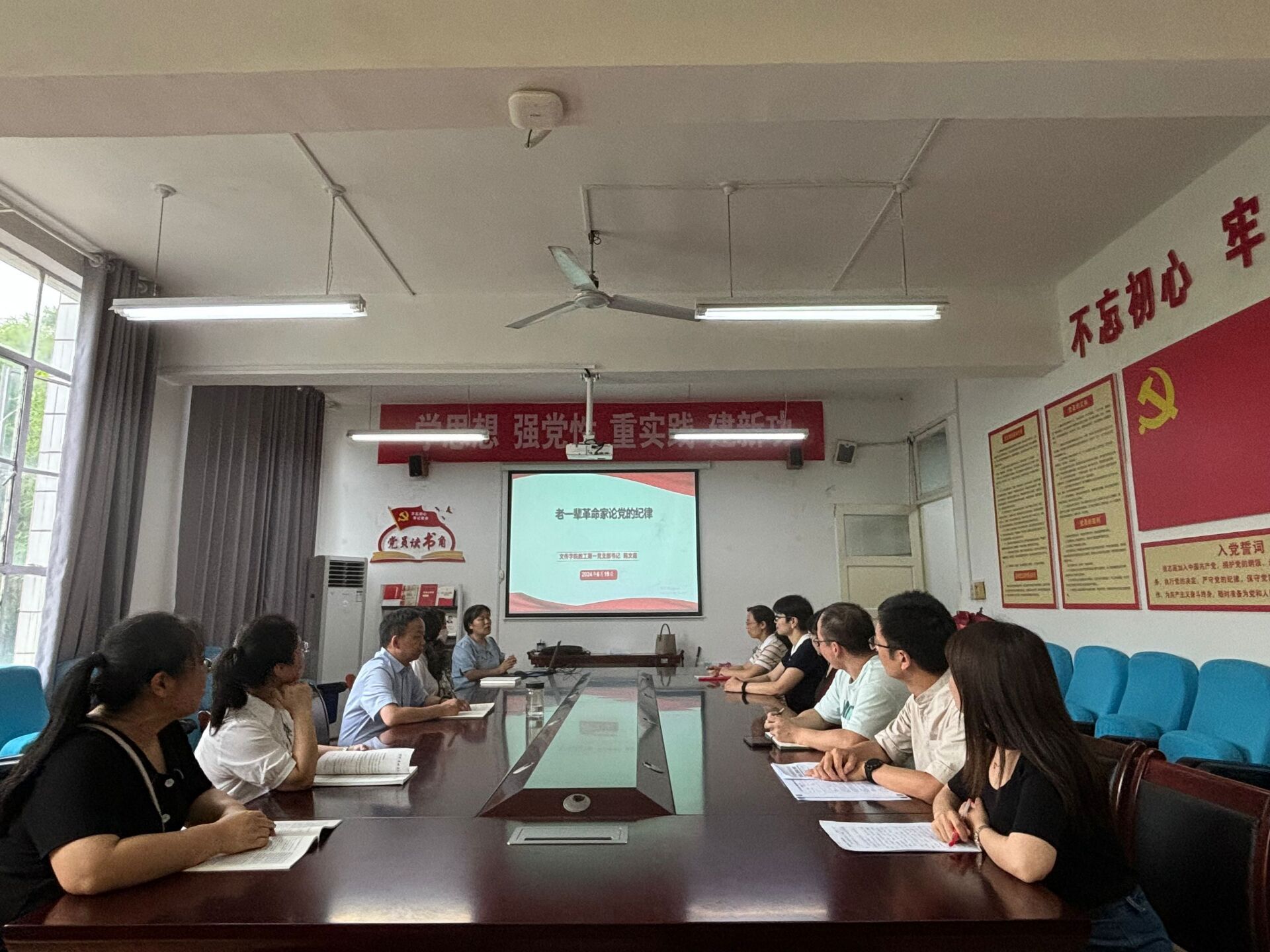 2024年6月19日下午,太阳成tyc122cc集团教工第一党支部开展党支部书记讲党课活动,活动主题为“老一辈革命家论党的纪律”,活动在2307室举行,由支部书记韩文霞主讲,支部全体党员参加学习。