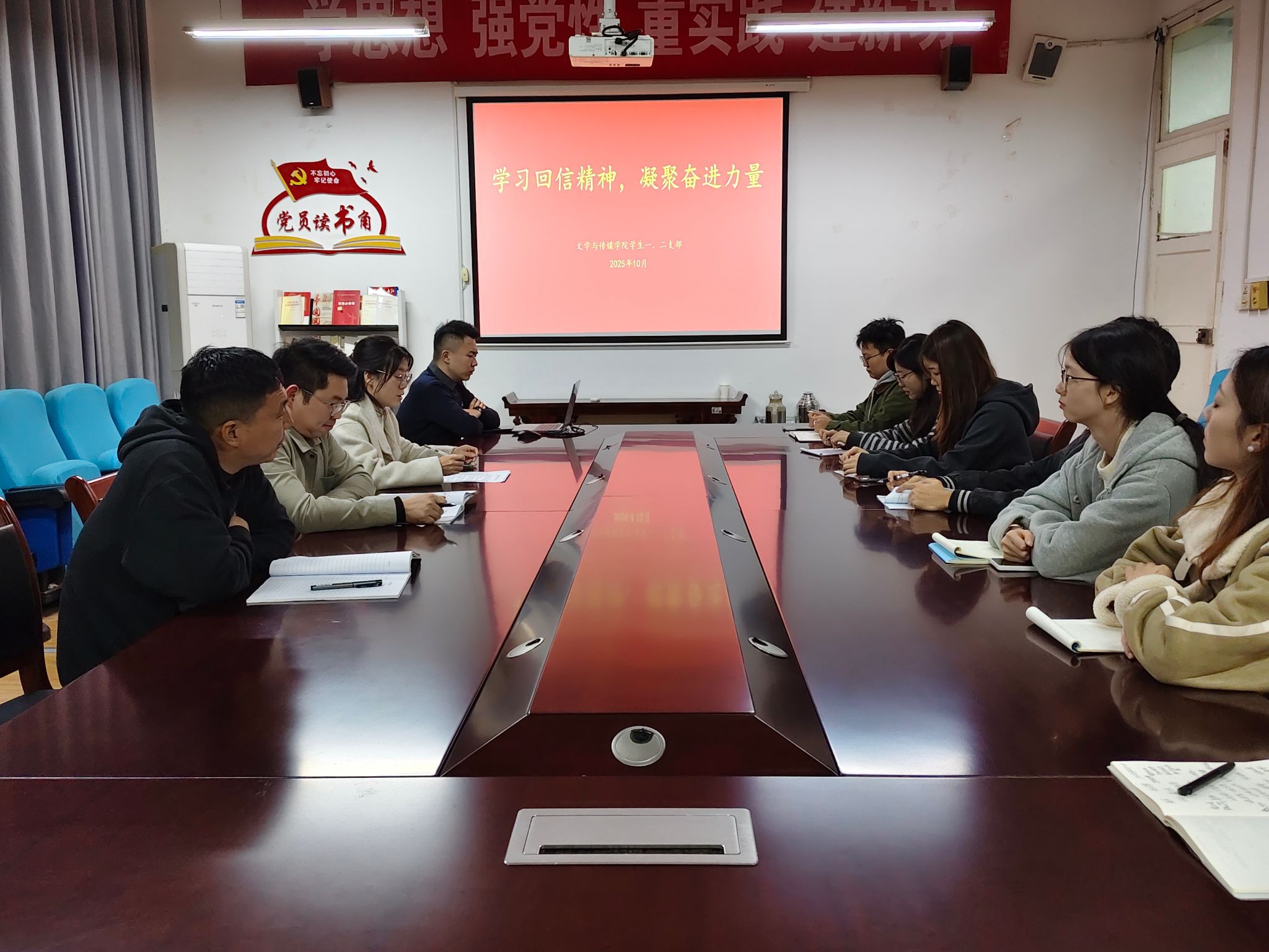 10月28日,太阳成tyc122cc集团员工一、二党支部联合开展“学习回信精神,凝聚奋进力量”主题党日活动,深入学习习近平总书记给特岗教师的重要回信精神。党总支组织委员薛涛、员工一、二支部书记刘言军、喻言及全体员工党员参加活动。