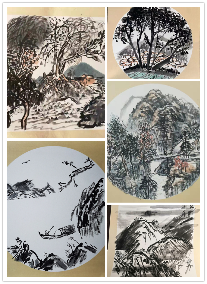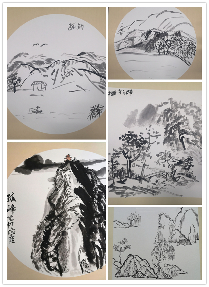到达目的地后,学院特邀中国美术协会会员、陕西省中国画协会理事王关棣老师为大家讲授中国画赏析与创作,带领教师感受丹青之美。王老师结合中国画历史发展、内容分类、风格特点以及绘画笔法等,一边讲解一边示范,引导教师对中国水墨画有了更深的认知。随后学院老师们纷纷拿起画笔,点润墨香,在宣纸上勾、点、皴、擦,脑海中回首着诗词佳作,与眼前的山水美景进行着跨时空的链接,诗情画意跃然纸上,在王关棣老师的指导下,绘就了属于自己的第一幅丹青水墨作品。