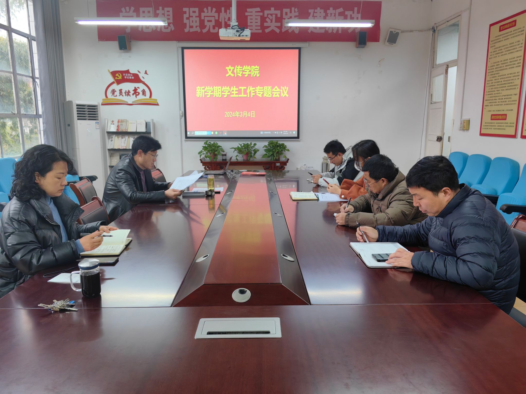 杨海蓉对开学期间员工工作进行了汇总,传达了学校2月28日召开的新学期员工工作会议精神,宣读了本年度员工工作计划及近期员工工作安排,对员工思想动态、稳定安全、2024届毕业生就业工作做了强调,希望学工团队新学期戮力同心,做好本职工作。
