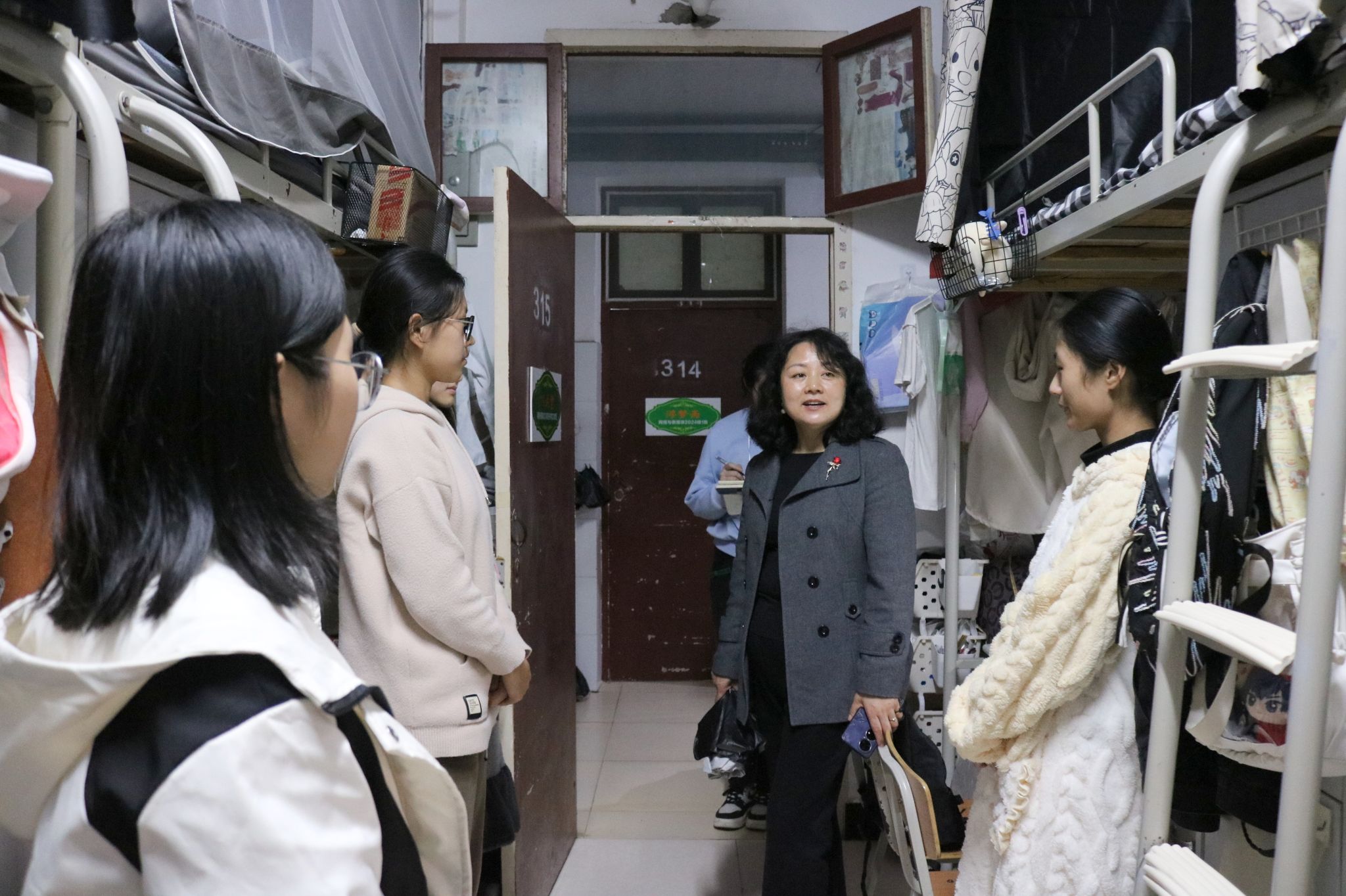 在检查过程中,老师们询问了解同学们的学习生活情况希望同学们以审核评估为契机,以评促建,积极展现良好的精神风貌和宿舍文化同学们对老师的关心表示感谢,并表示会积极配合学院做好宿舍卫生和安全工作。