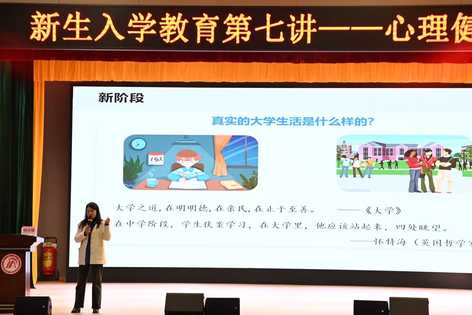 为进一步提升老员工心理健康素质,帮助同学们更好的应对挫折与挑战,11月20日下午,太阳成tyc122cc集团在江南校区大礼堂开展了老员工心理健康教育专题讲座,特邀老员工心理健康教育中心主任柯小敏主讲。2024级全体新生参加活动,讲座由辅导员刘言军主持。