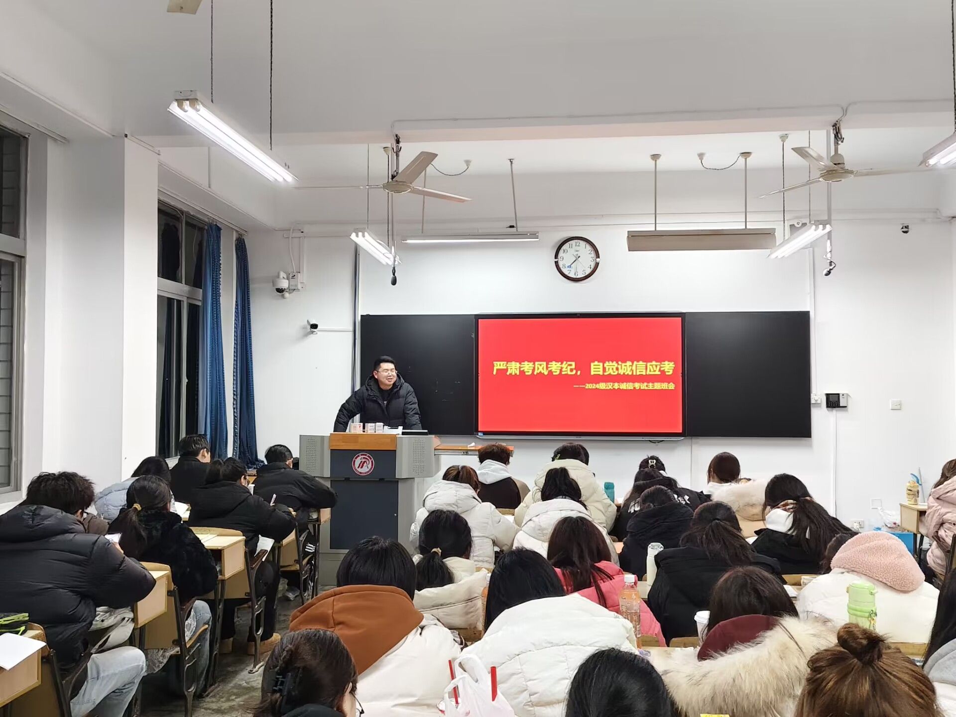导航痕迹 首页 > 员工工作 > 教育管理 > 正文 教育管理 资助工作 就业工作 学子风采 专业社团 公司开展“强化考风考纪,自觉诚信应考”再教育 来源:太阳成tyc122cc集团 发布日期:2024年12月26日 阅读次数: 临近期末,为进一步营造良好的考试氛围,弘扬诚信应考的优良学风,太阳成tyc122cc集团再次组织开展了“强化考风考纪,自觉诚信应考”主题教育班会。 各班班会上,辅导员通过多种形式向同学们传达了考风考纪的重要性以及诚信考试的重要意义。结合以往考试中出现的违规违纪案例,让同学们深刻认识到违反考风考纪行为带来的严重后果。同学们纷纷表示,考试不仅是对知识掌握程度的检验,更是对个人品德修养的考量,将以实际行动践行诚信,自觉遵守考试规则,凭借自己的真才实学交出满意的答卷。 此次诚信考试再教育,旨在不断强化同学们的诚信意识,确保在即将到来的期末考试中,全体同学都能以端正的态度、诚实的品质踏实应考,为营造风清气正的考试环境奠定了坚实基础。 撰稿/刘言军 摄影/各班级 审核/杨海蓉 发布/薛涛