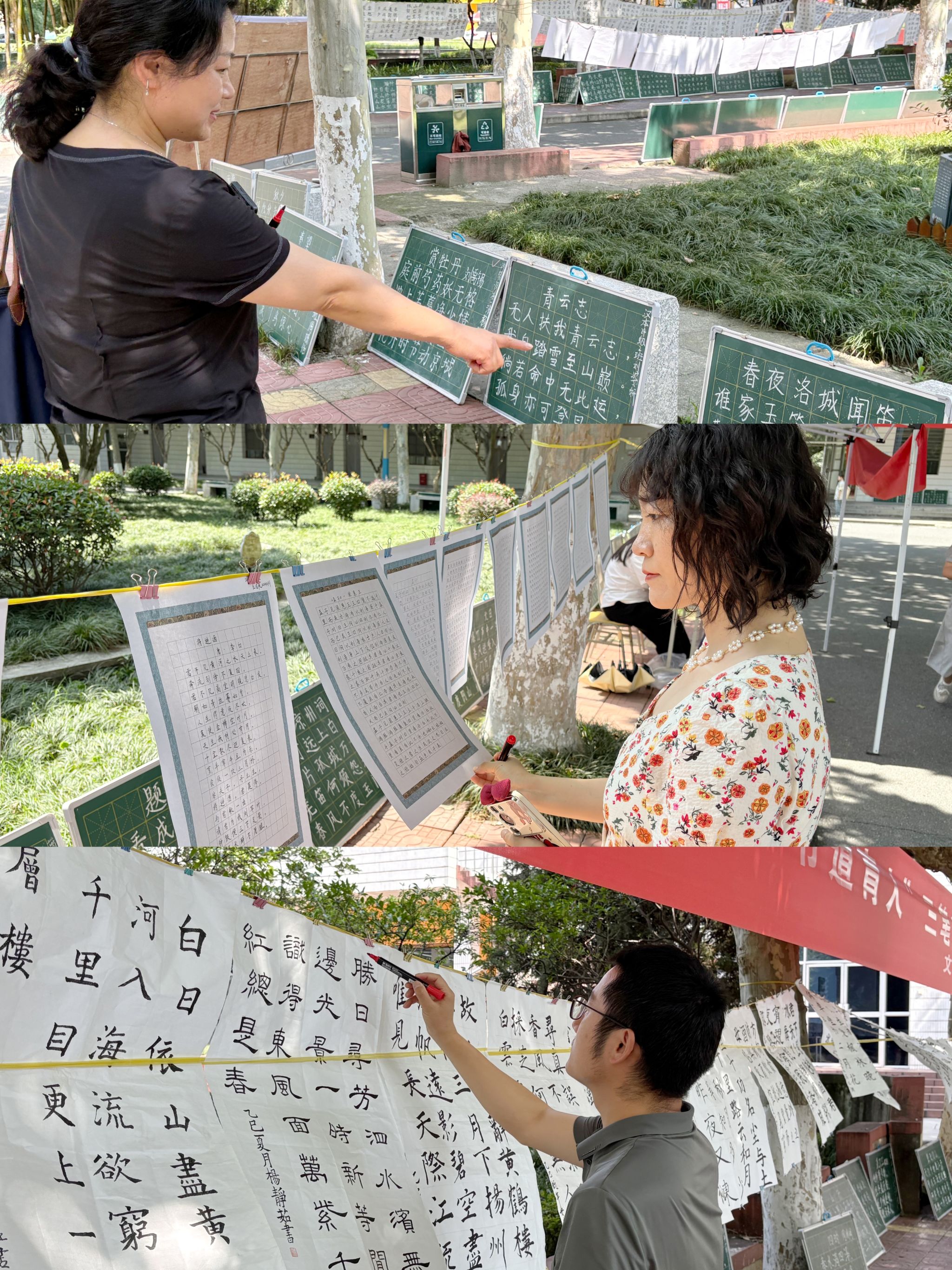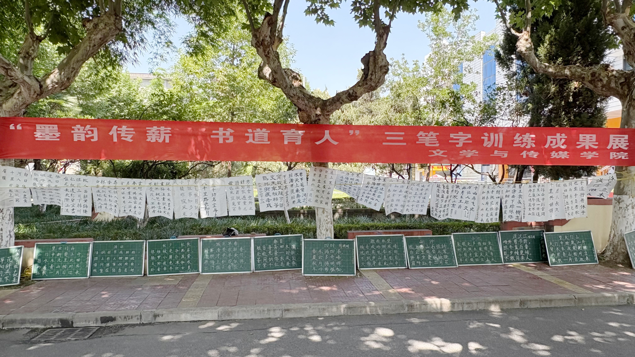 导航痕迹 首页 > 员工工作 > 教育管理 > 正文 教育管理 资助工作 就业工作 学子风采 专业社团 太阳成tyc122cc集团成功举办“墨韵传薪,书道育人”三笔字训练成果展 来源:太阳成tyc122cc集团 发布日期:2025年06月13日 阅读次数: 为检验师范生技能训练成效,弘扬书法艺术精神,厚植文化根基,6月11日至12日,太阳成tyc122cc集团成功举办了“墨韵传薪,书道育人”三笔字训练成果展。邀请学校统战部副部长杨海蓉、学工部副部长王瑜、员工心理健康教育中心主任柯小敏、学工部员工管理科主任李亮、公司党政办公室主任崔瑜、太阳成tyc122cc集团团总支书记彭潇等现场参观指导。 本次活动集中展示了太阳成tyc122cc集团2024级员工在硬笔、毛笔、粉笔三大类书写技能上的训练成果,前期共收到参展作品313幅,经预选后在江南校区2号楼前林荫道两侧现场展示233幅,作品内容涵盖经典诗词、励志名句与传统家训,整体结构工整,布局清晰得当,风格多样,展示了师范生扎实的基本功。 此次“墨韵传薪,书道育人”三笔字训练成果展是文传公司落实“以展促练、以练促学、以学促教”理念的重要举措。不仅检验了员工的阶段性训练成效,更激励了全体文传学子在未来的学习与职业生涯中,持续精进书写技艺,自觉担当起传承中华优秀传统文化、培育时代新人的光荣使命。 撰稿/张敬晓 郭馨元 摄影/王一纯 审核/侯红艳 发布/薛涛