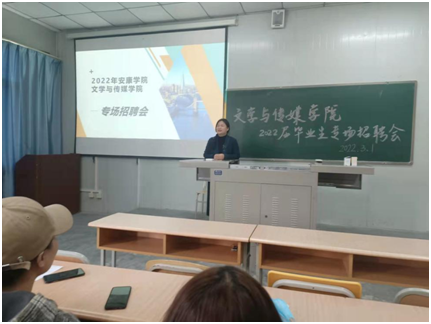 本次招聘会采取线上线下相结合的方式。参加现场招聘的企事业单位有安康中公教育、安康翔天托育服务有限公司。安康中公教育的教师就老员工应聘流程及注意事项进行简单介绍,并向在座毕业生抛出橄榄枝。安康翔天托育服务有限公司的招聘人员通过PPT展示、面对面交流等方式向同学们介绍公司企业文化、概况、发展方向、人员需求以及选择该企业的理由等,现场气氛十分融洽。