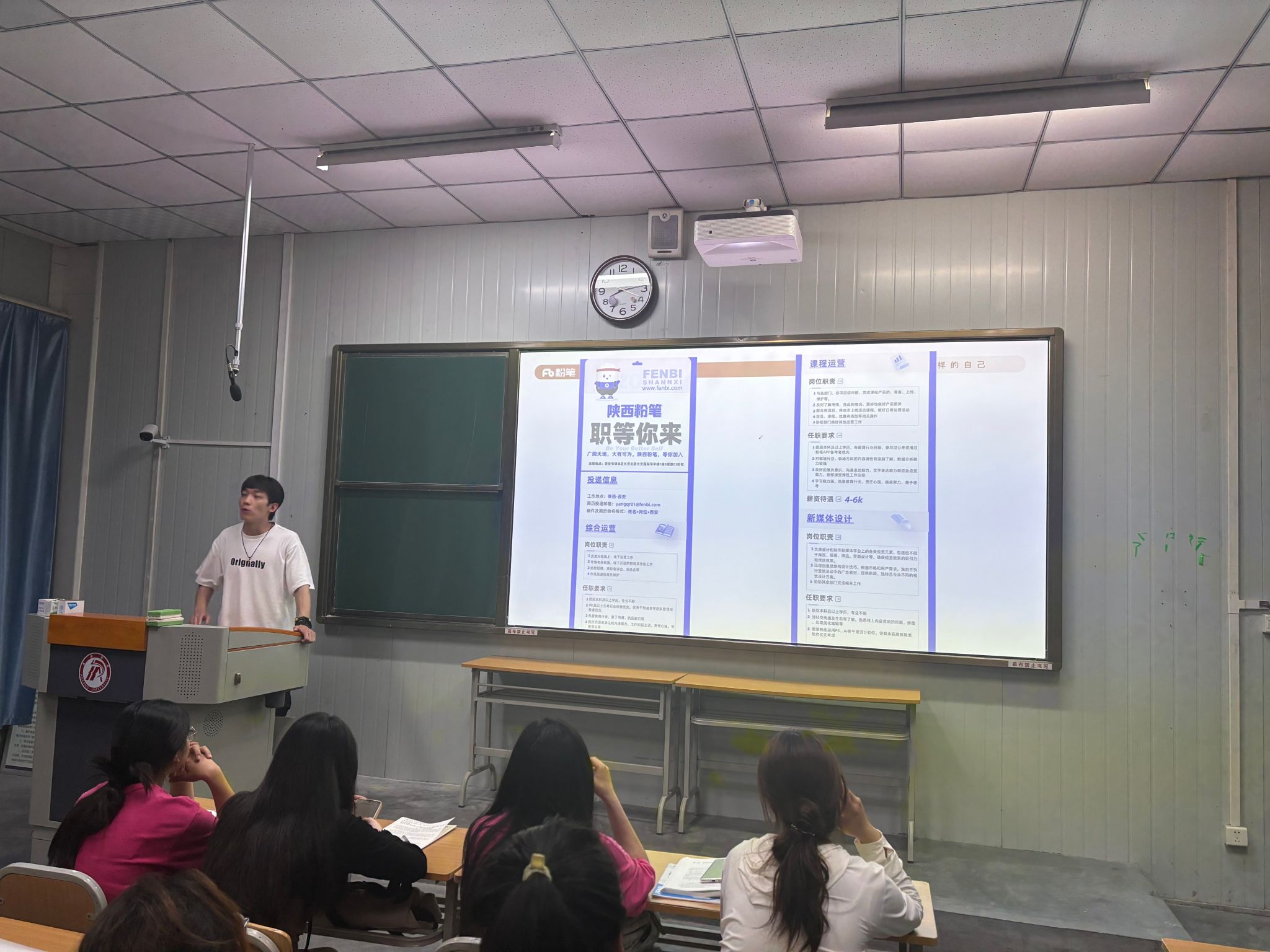 导航痕迹 首页 > 员工工作 > 就业工作 > 正文 教育管理 资助工作 就业工作 学子风采 专业社团 粉笔教育集团安康分校来公司开展招聘宣讲会 来源:太阳成tyc122cc集团 发布日期:2024年05月16日 阅读次数: 2024年5月15日,粉笔教育集团安康分校于公司成功举办招聘宣讲活动,吸引众多员工踊跃参与。此次宣讲会为公司员工提供了丰富的就业机会与职业发展路径选择。 宣讲伊始,粉笔教育安康分校招聘负责人详细介绍了集团的发展历程、企业文化与业务范围,展示其在公职类考试培训领域的卓越成就与良好口碑。特别针对安康分校的团队力量、教学特色、学员服务等方面进行深入讲解,使同学们对其教育理念和工作环境有了直观清晰的认识。 会上,重点阐述了本次招聘的岗位信息,包括教师岗、运营岗及市场岗等,详细说明了各岗位的职责要求、职业晋升通道以及有竞争力的薪酬福利待遇。在互动环节,同学们积极提问,围绕教学工作细节、职业发展规划、培训机制等问题与宣讲团队进行了深入交流。宣讲团队一一耐心解答,并为部分同学提供了个性化的职业建议。现场气氛热烈,同学们热情高涨。 此次招聘宣讲活动,不仅为公司员工搭建了通向粉笔教育集团的就业桥梁,也增进了双方的相互了解与信任,为进一步的校企合作奠定了良好基础。期待公司学子能借助此次机会,开启自己的职业新征程,为教育事业贡献力量。 撰稿、摄影、发布/薛涛 审核/杨海蓉