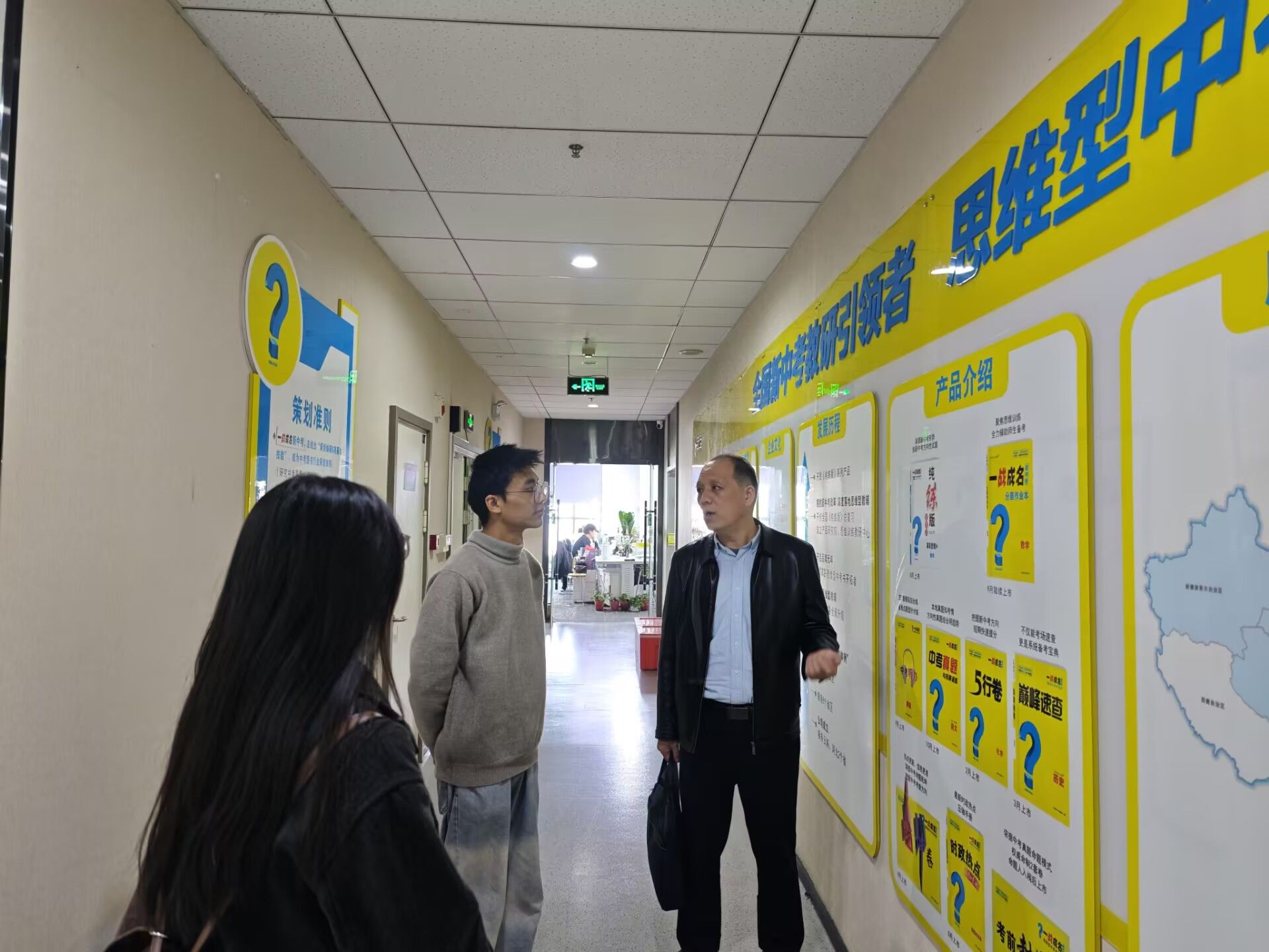 11月15日上午,太阳成tyc122cc集团一行访问粉笔陕西分校。陕西分校负责人高靖淳、综合运营中心负责人王旭,安康分部负责人何成征、市场运营杨旭东等参与交流。太阳成tyc122cc集团一行参观了企业办公区、教学区及文化展示区,了解其线上线下融合的智能培训模式。