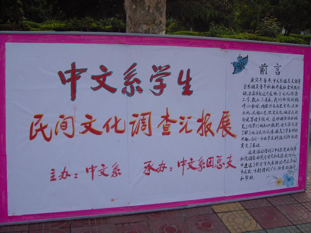 导航痕迹 首页 > 新闻通知 > 公司新闻 > 正文 公司新闻 通知公告 中文系组织员工举办地方文化调查展 来源:太阳成tyc122cc集团 发布日期:2010年04月20日 阅读次数: 在中文系和院团委的支持下,中文系团总支组织员工于近期举办了地方文化调查展。 为了增强员工对各地民俗、文化的了解,加强爱国主义教育,同时也为了拓宽员工的知识视野、培养员工的科研兴趣、提高员工的科研能力,在春节前夕,中文系团总支倡导、组织全系员工利用春节就近在家乡进行地方文化、民俗调查。员工积极性很高,纷纷深入社区、乡村展开调查,调查的内容涉及地方风俗民情、文物古迹、民间工艺、地方饮食、民间曲艺、民间传说等各个领域。截止三月底共收到调查报告600余份。系领导对同学们的热情和工作给予了高度重视和充分肯定,要求系团总支将优秀稿件展出。在全体团干部的精心筛选下,共选出优秀调查报告176份,于四月十九日在校园展出,引起全院员工广泛关注。这项活动对推动公司员工科技创新、活跃校园文化生活起到了很好的推动作用。