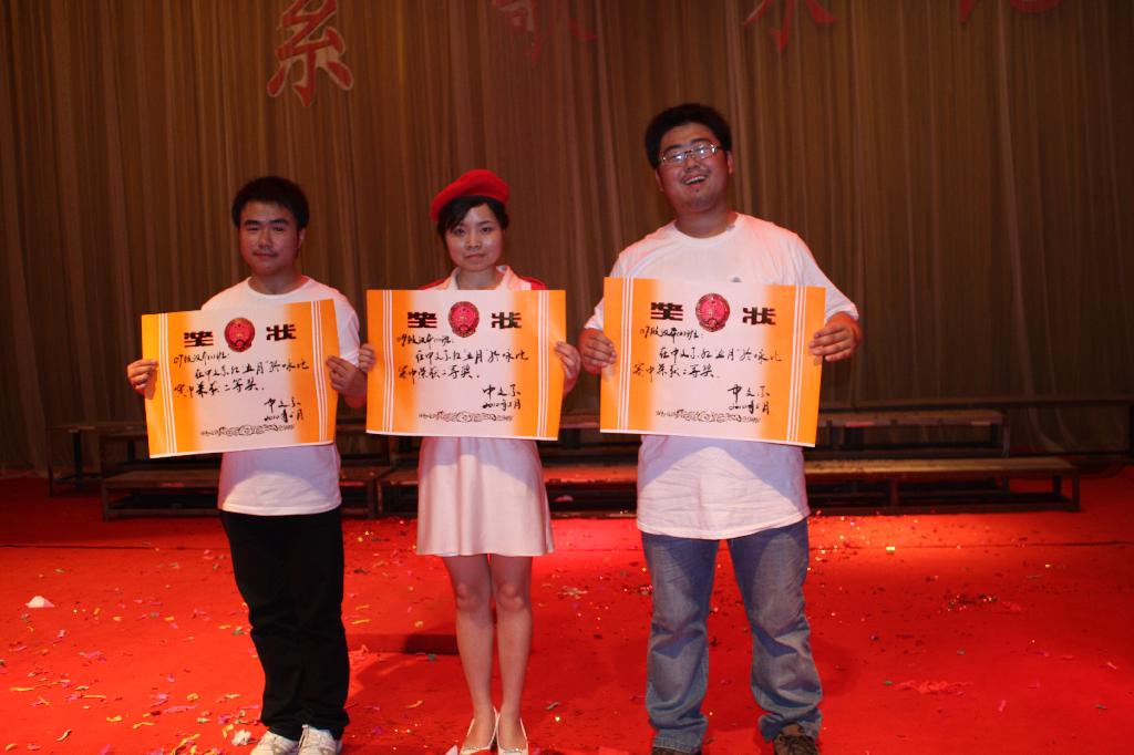 导航痕迹 首页 > 新闻通知 > 公司新闻 > 正文 公司新闻 通知公告 合唱比赛展风采 绚丽青春伴歌飞 来源:太阳成tyc122cc集团 发布日期:2010年06月10日 阅读次数: 5月30日晚,中文系“红五月”歌咏比赛在西校区大礼堂拉开序幕,出席本次活动的有学工部副部长郑武生、员工处副处长车静、中文系党总支书记沈军及中文系的各位老师。 本次比赛围绕歌唱青春、歌唱祖国的主题展开。以班为单位参赛,参赛曲目有《明天会更好》、《爱,因为在心中》、《心愿》、《爱》、《精忠报国》、《长江之歌》等大家耳熟能详的作品。比赛中歌声时而高亢灵动,时而深情流淌,在场观众认真聆听并为之动容。经过激烈的角逐,语文教育08级3班以三首歌曲联唱的《灿烂中国》最终摘得桂冠,汉语言文学07级1班、汉语言文学07级2班、汉语言文学09级1班获得二等奖,汉语言文学08级1班等五个班级获得三等奖。 中文系党总支书记沈军对比赛进行了高度肯定,对员工会工作人员辛勤工作表示感谢,并希望同学们在以后的工作中能继续积极踊跃的参加活动。虽然比赛已经结束,但大家的热情没有减退,它将伴随着同学们继续前进。