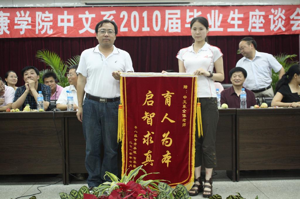 2010年6月30日,中文系在学院图书馆六楼报告厅召开2010届毕业生座谈会,公司党委副书记胡鸿晓教授、中文系主任戴承元教授、中文系党总支书记沈军老师等党政领导、孙鸿教授、周政教授等二十余名教师出席了座谈会,中文系2010届毕业生代表和大二、大三员工代表参加了座谈会。座谈会由中文系党总支书记沈军老师主持。