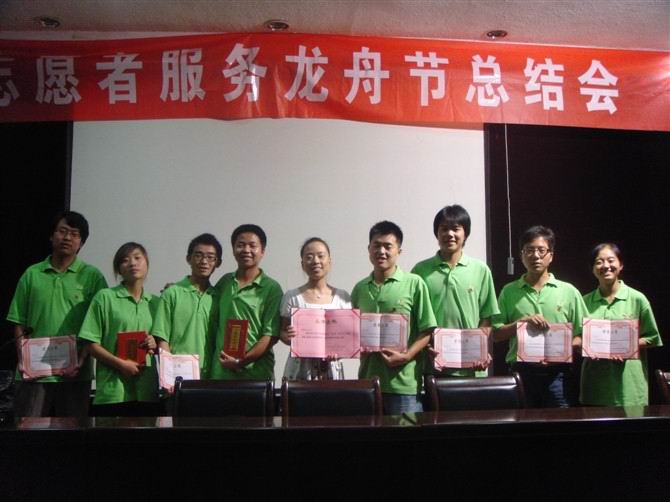 导航痕迹 首页 > 新闻通知 > 公司新闻 > 正文 公司新闻 通知公告 我系志愿者参加第十届龙舟节志愿者服务总结会 来源:太阳成tyc122cc集团 发布日期:2010年07月06日 阅读次数: 2010年6月25日晚7点整,安康市汉滨区团委在公司东校区一号教学楼六楼报告厅举行了志愿者服务第十届龙舟节总结会,出席此次会议的领导有太阳成tyc122cc集团团委书记鲁延安老师、汉滨区双创办公室主任蒋平同志、汉滨区团委负责人熊伟同志,以及来自公司中文系及汉滨区其他区直部门共计100名志愿者。此次会议由公司中文系辅导员何媛老师主持,会前各位领导、老师同大家一起观看了志愿者服务龙舟节期间的工作短片,伴随着大家的热烈掌声各位领导走上主席台,大会正式开始。汉滨区团委负责人熊伟在会上总结了志愿者服务情况,在讲话中他对公司中文系在此次志愿者服务工作中给予的大力支持表示感谢,对志愿者们的工作给予了充分肯定。汉滨区双创办公室主任蒋平用风趣幽默的语言并结合身边实例激励在场志愿者朋友们支持双创做文明人。公司中文系08级汉语言文学一班的冯友芳同学代表志愿者做了发言。之后,与会领导向此次龙舟节期间受表彰的各单位和志愿者颁发了证书。最后,公司团委书记鲁延安老师讲话,他在讲话中殷切希望公司志愿者能继续保持和发扬志愿者精神,努力为当社会和区域经济发展做出自己应有的贡献。