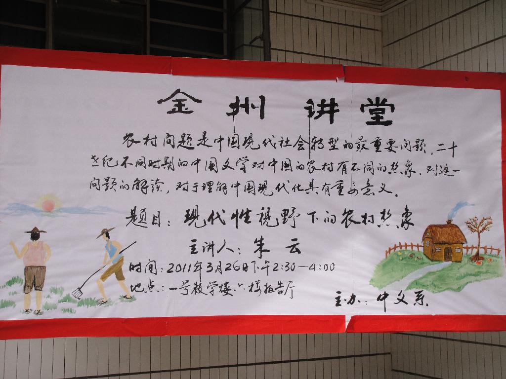 导航痕迹 首页 > 新闻通知 > 公司新闻 > 正文 公司新闻 通知公告 中文系教师朱云主讲“金州讲堂”第五讲 来源:太阳成tyc122cc集团 发布日期:2011年03月28日 阅读次数: 2011年3月26日14:30分,中文系朱云老师为“金州讲堂”在一号楼六楼报告厅为广大师生做题目为“现代性视野下的农村想象”专题讲座。 朱老师首先就“想象”和“现代性”做出不同的解释,提出没有想象就没有文学,并将进步的现代性和审美的现代性结合,提倡去自然界寻求精神家园。其次,朱老师结合卡林内斯库的两种“现代性”提出现代性农村想象的两条线索,即 “进步的现代性思路”“审美的现代性思路”,将科学理性和美好的人性结合,推进中国的现代化。最后,朱老师说中国的农村是一个复杂的存在,从现代性的解读只能考察一部分作品,任何一部作品对农村的描绘都是一种想象,都是有选择的,并激励在座的同学们认真学习专业知识,从不同的角度认识剖析现代农村所积淀的深刻韵味。 在讲座结束时,中文系副主任雷升录老师进一步总结,强调在现代社会资本源源不断输入的情况下,在新的价值尺度背景中,农村文学的发展面临着残酷而严峻的形式,这一问题给在场的每位同学带来了一个新的思考空间。