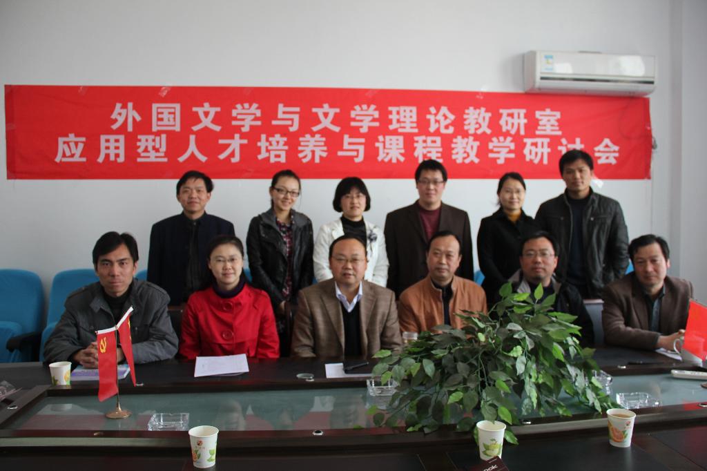 为了进一步明确应用型人才培养目标的具体内涵,并切实将应用型人才培养理念贯穿到教师的公司产品各个环节之中,根据中文系主任戴承元教授细化应用型人才培养目标的指导思想,由主管教学工作的梁卫华副主任、主管科研工作的雷升录副主任具体部署,“外国文学与文学理论”教研室经过近一个月的准备,于4月9日在1号教学楼1603会议室召开了“应用型人才培养与课程教学”研讨会。