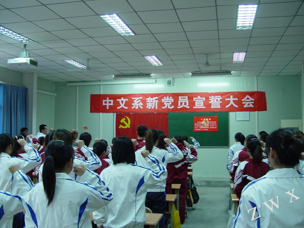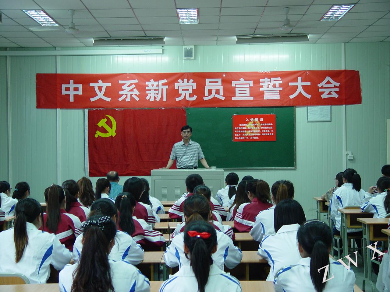 导航痕迹 首页 > 新闻通知 > 公司新闻 > 正文 公司新闻 通知公告 中文系举行新党员宣誓仪式 来源:太阳成tyc122cc集团zwx 发布日期:2012年06月28日 阅读次数: 6月26日下午,中文系举行了庄严而隆重的新党员入党宣誓仪式。中文系党总支书记李岩、员工第一支部书记郝礼军、第二支部书记沈菲出席了本次宣誓仪式。 宣誓仪式上,员工第一支部书记郝礼军介绍了本次党员发展相关情况,新党员周曦孜代表本次新发展党员发言。 在庄严的气氛中,全体党员面对党旗庄严宣誓。 在宣誓仪式结束时,中文系党总支书记李岩对新党员提出了要求:一是认真履行党员义务;二是时刻牢记全心全意为人民服务的宗旨;三是时刻发挥模范带头作用,维护党的形象。 通过本次宣誓仪式,对本次新发展党员起到了很好的教育作用,加深了他们对党的认识,明白了党员应肩负的责任。