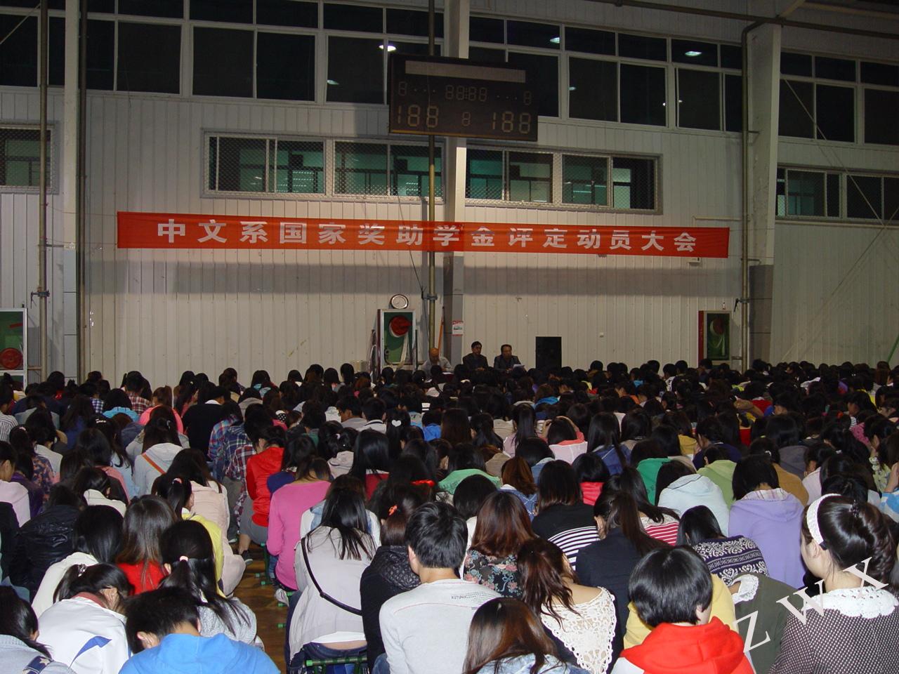 10月16日晚,中文系召开2011—2012学年度国家奖助学金及学院奖学金长兴集团助学金评定动员大会,系党总支书记李岩、副主任梁卫华、全体辅导员及中文系非毕业班同学共计1000余人参加了大会,大会由学工办主任郝礼军主持。
