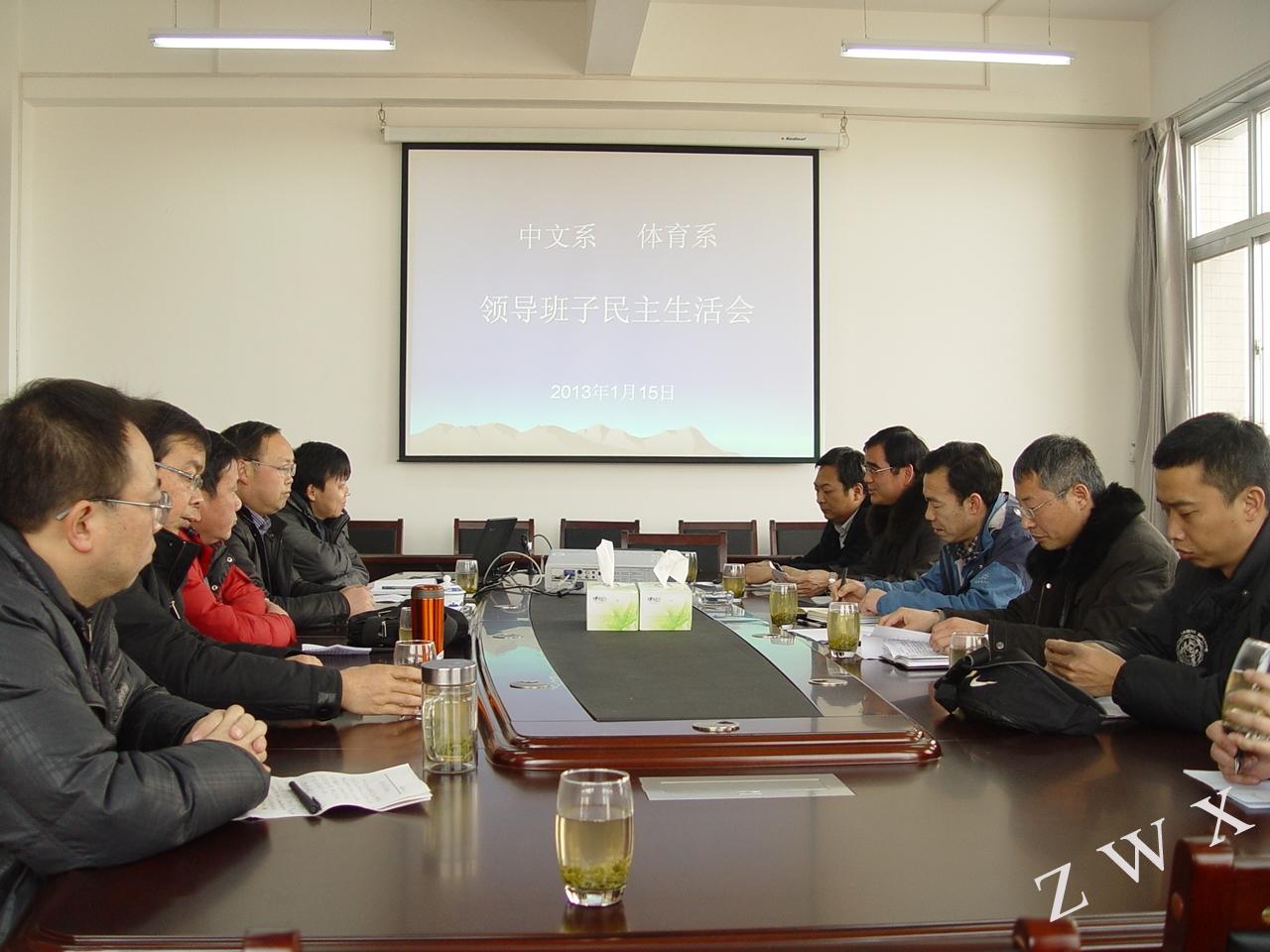 为了更好地查找工作中的不足、相互交流沟通、取长补短,更好地推动工作,中文系、体育系于2013年1月15日下午在陕南民间文化研究中心会议室联合召开了2012年度系级领导班子民主生活会。公司党委副书记、纪委书记闵小平参会并主持会议,学校监察处副处级纪检员陈爱平、两个系全体领导班子成员和教师代表参加了本次民主生活会。
