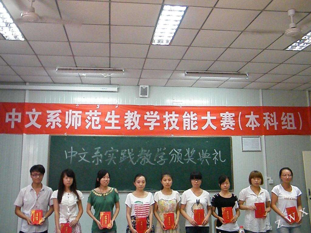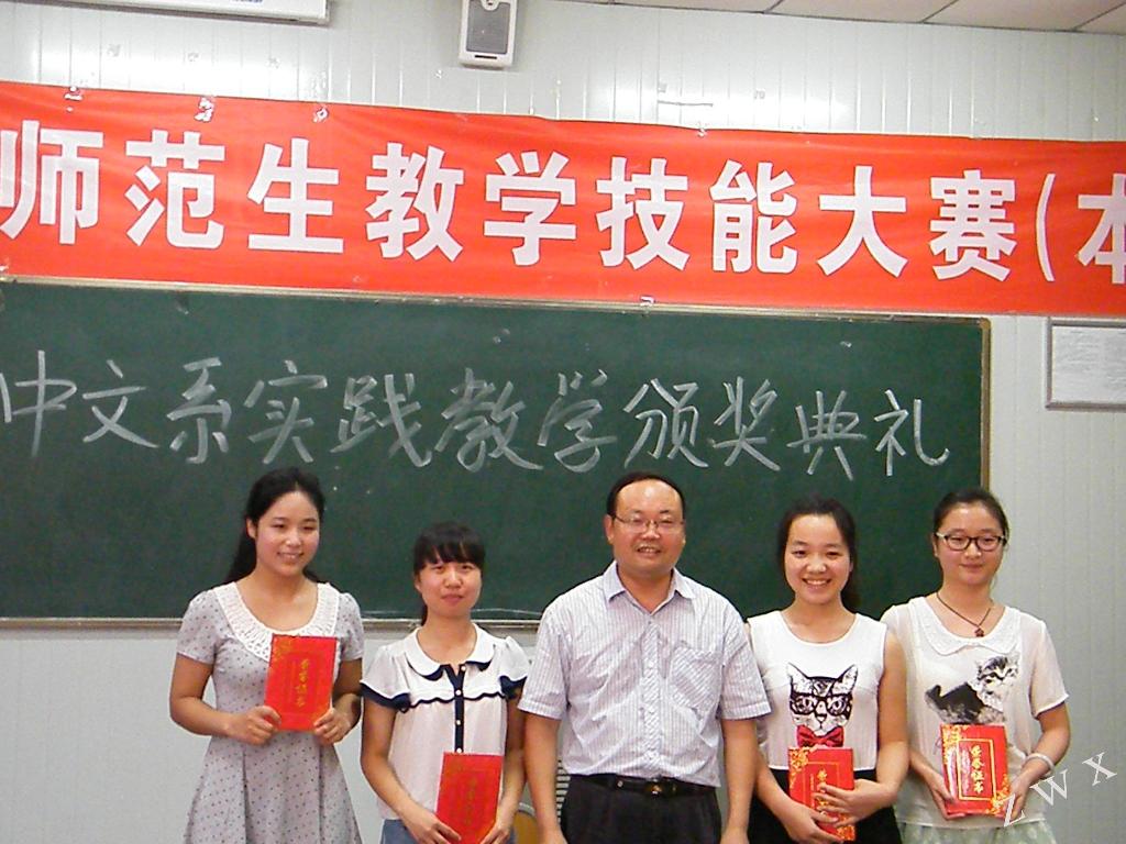6月28日,中文系第三届师范生教学技能大赛决赛在十号楼1016、1018教室成功举行。来自2010级汉语言文学和2011级语文教育专业的52名同学参加角逐,最终评选出一等奖4名,二等奖8名,三等奖10名,优秀奖30名,同时评出“最佳板书奖”、“最佳才艺奖”等单项奖4名。