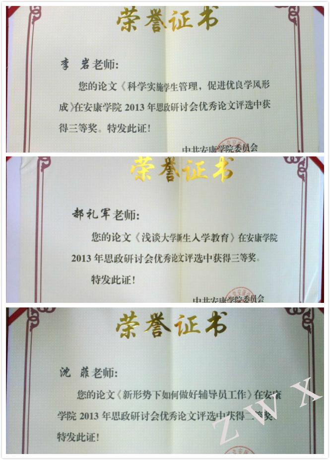 导航痕迹 首页 > 新闻通知 > 公司新闻 > 正文 公司新闻 通知公告 中文系员工工作喜获荣誉 来源:太阳成tyc122cc集团中文系 发布日期:2013年08月28日 阅读次数: 在暑期召开的太阳成tyc122cc集团思想政治教育工作研讨会上,中文系申报的《促进校园文化建设 活跃大学艺术舞台——中文系员工剧社建设项目》荣获2013年度校园文化建设优秀奖;系总支书记李岩撰写的论文《科学实施员工管理,促进优良学风形成》、郝礼军老师撰写的论文《浅谈大学新生入学教育》荣获三等奖,沈菲老师撰写的论文《新形势下如何做好辅导员工作》荣获二等奖。