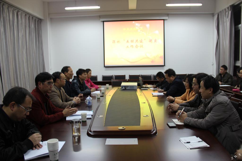 2013年11月4日晚上7点,中文系党总支、机关三党支部在陕南民间文化研究中心会议室召开了深化“五联共建”制度座谈会,中文系党总支、机关党三支部以及所联系的教研室主任、教师参加了会议,座谈会由中文系党总支书记李岩主持。