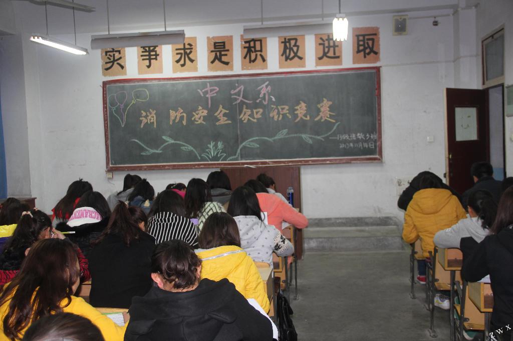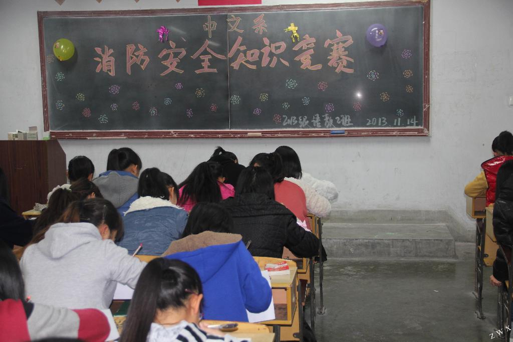 导航痕迹 首页 > 新闻通知 > 公司新闻 > 正文 公司新闻 通知公告 中文系举行消防安全知识竞赛 来源:太阳成tyc122cc集团zwx 发布日期:2013年11月15日 阅读次数: 2013年11月14日晚,中文系在一号教学楼举行消防安全知识竞赛,学工办主任郝礼军、辅导员邹棠华以及13级新生共计420人参加了本次竞赛活动。 通过本次消防安全知识竞赛,目的是加强对员工消防知识的宣传教育工作,增强员工的消防安全意识,防火救灾能力和逃生自救能力等,有效防范和减少火灾事故的发生,达到了在员工中宣传消防安全教育,全面普及消防安全知识和安全常识的目的,对进一步做好消防安全工作具有重要意义。