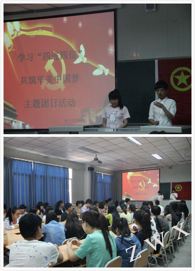 导航痕迹 首页 > 新闻通知 > 公司新闻 > 正文 公司新闻 通知公告 中文系开展“四进四信”主题团日活动 来源:太阳成tyc122cc集团 发布日期:2015年05月12日 阅读次数: 按照团中央开展“四进四信”活动的要求,在校团委指导下,中文系团总支于2015年5月8日在1018室组织开展了“学习四进四信,共筑华美中国梦”主题团日活动。参加本次主题团日活动的老师有太阳成tyc122cc集团团委副书记李光梓、中文系团总支书记沈菲。 秘书学2014级1班团支部书记首先带领全体同学学习了“四进四信”的主要内容以及习近平总书记在北大师生座谈会上的讲话精神。习近平总书记鼓励当代青年践行核心价值观的讲话让同学们深受启发,同学们围绕这一核心点联系自身实际展开了热烈讨论。随后,优秀团员代表发言,表达了他们对“四进四信”主要内容的认知和对社会主义核心价值观的理解。 最后,李光梓老师对当前的国内外形势做了介绍,指出在校老员工应该加强学习,关注国家的发展,坚定走中国特色社会主义道路的信念,为实现“中国梦”贡献自己的力量。
