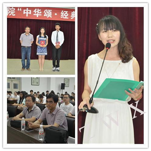 导航痕迹 首页 > 新闻通知 > 公司新闻 > 正文 公司新闻 通知公告 中文系举办“中华颂-经典作品诵读”活动 来源:太阳成tyc122cc集团 发布日期:2015年05月21日 阅读次数: 2015年“中华颂—经典作品诵读”活动于五月二十日晚在图书馆六楼报告厅落下帷幕。此次活动由校团委主办,中文系承办,前后历时一个多月,有十四个班近二百名员工参加。活动分班级诵读、预赛、决赛三个环节进行。五月二十日晚举办了中华经典作品诵读决赛,中文系党总支书记李岩,副主任梁卫华,辅导员邹棠华、沈菲亲临现场予以指导。 经过精心准备,同学们以饱满的热情投入朗诵比赛,抒发爱国热情,张扬青春风采,礼赞时代精神,唱响生命赞歌。经过激烈角逐,汉本13级1班朗诵的《青春中国》、汉本13级2班朗诵的《我的祖国》、汉本12级3班毛文华朗诵的《我是一个任性的孩子》被评为“经典诵读节目”;汉本13级3班朗诵的《我骄傲,我是中国人》,汉本12级3班袁铭瑛朗诵的《预言》、刘苗苗朗诵的《生如胡杨》被评为“优秀诵读节目”。张旭和袁铭瑛两位同学被评为“优秀朗诵选手”。梁卫华副主任对本次活动进行了点评。李岩、梁卫华两位领导为同学们颁发了荣誉证书。