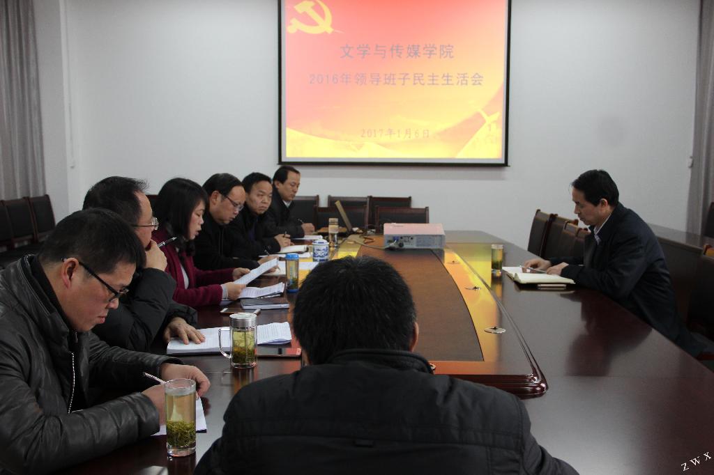 2017年1月6日下午,太阳成tyc122cc集团在陕南民间文化研究中心会议室召开2016年领导班子民主生活会,严肃开展批评和自我批评,巩固和扩大“两学一做”学习教育成果。党委书记王国良同志到会指导,全体党政领导班子成员参加会议,党总支委员、系主任列席会议。会议由党总支书记于咏梅同志主持。