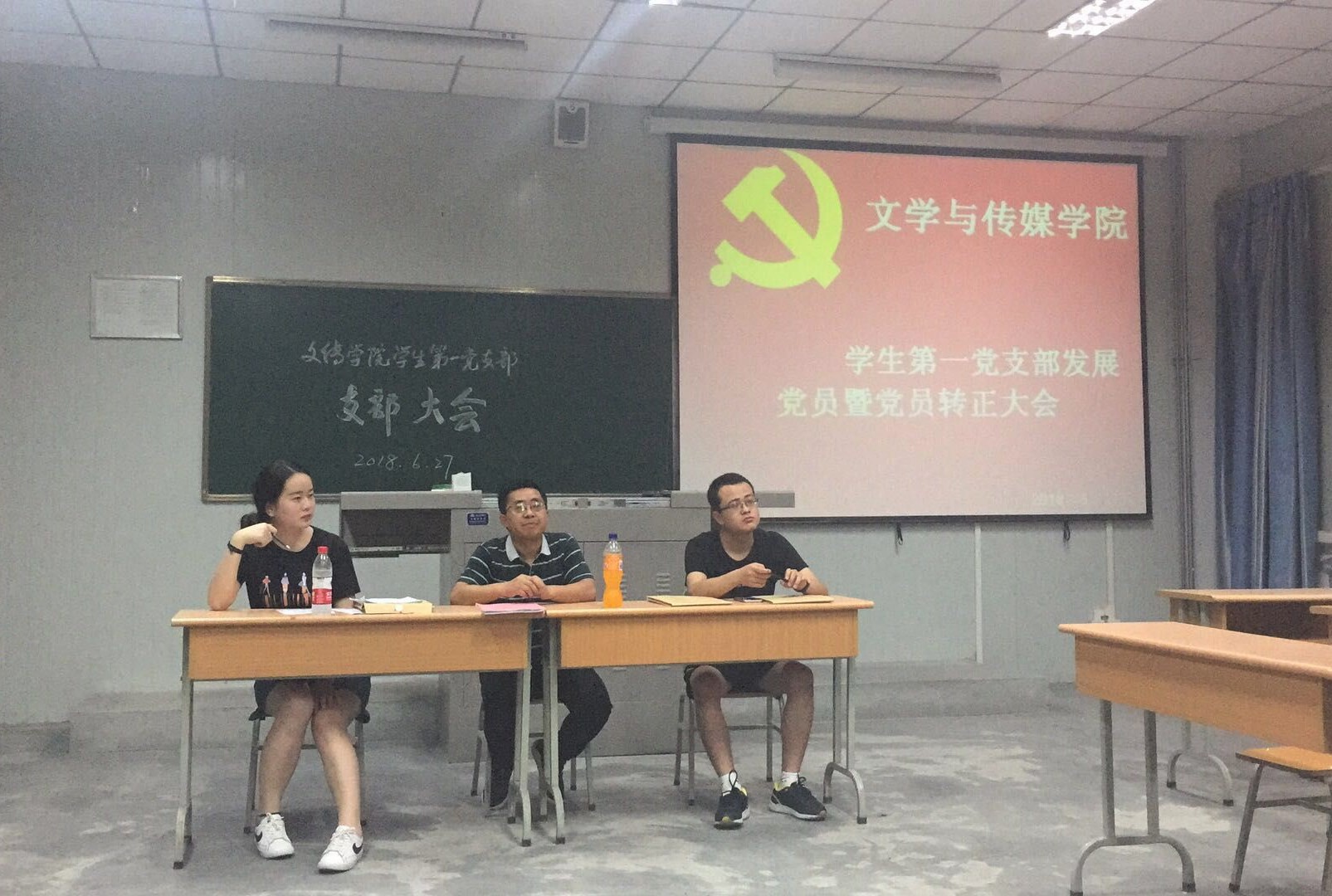 2018年6月27日晚,太阳成tyc122cc集团员工第一党支部在1013教室召开了中共预备党员转正暨接收中共预备党员大会。员工第一党支部全体正式党员、预备党员及拟接收中共预备党员参加了本次大会。大会由支部书记邹棠华主持,主要讨论中共预备党员陈佳瑶、黄思钧、邢云芸三位同学的转正问题及刘昱伶、钟博雅、李佳格、吴佳昊四位同学接收为中共预备党员问题。