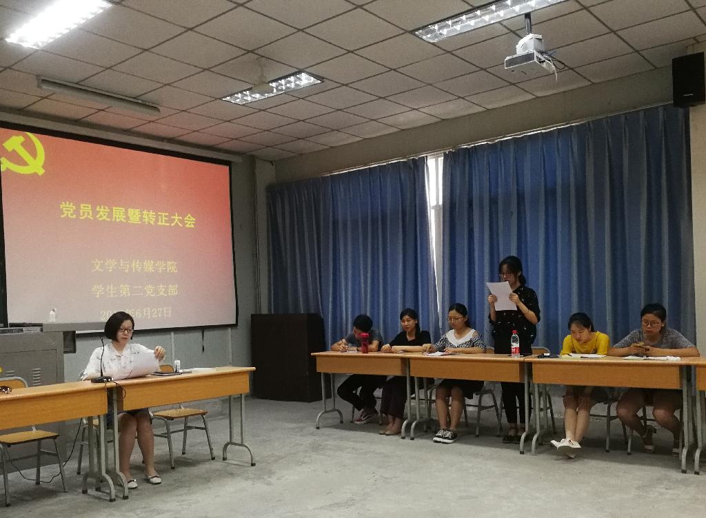 2018年6月27日下午,太阳成tyc122cc集团员工第二党支部在1017教室召开接收中共预备党员暨中共预备党员转正大会。太阳成tyc122cc集团党总支书记于咏梅、员工第二党支部书记沈菲、员工第二党支部全体党员参加了本次会议。会议由沈菲主持。