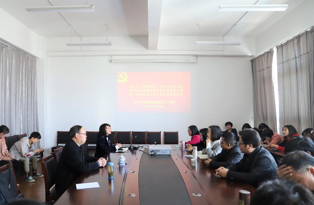 戴承元在总结讲话时强调,第一,政治理论学习的意义在于指导和推动工作,必须按党委要求落实到位。学习两会精神就是要了解国家的教育方针政策变化,这涉及到每一位教师的切身利益,也涉及专业和团队建设的走向,如在人才培养目标上,从德智体的发展转变到德智体美劳的全面发展,必须将“美和劳”两方面体现到人才培养方案的修订中。第二,高校要办好人民满意的教育,落实到二级学院就是要适应新文科发展要求,走进中小学语文课堂,推进教科研理论创新,注重教学形式方法的改革,打造“金课”,抵制“水课”。第三,保证思政课教学时间,发挥“课程思政”的育人功能,真正实现全员全过程全方位育人。第四,要把师德师风建设放在首位,教师们要按规矩教学、做事,增强规矩意识,掌握政策界限,引导员工成人成才。第五,学校今年按照要“引育并举、刚柔结合、内外联动、以才引才”的方针继续加大人才的引入和培育,希望全体上下同心,加强博士引进和培育工作,补齐团队队伍建设不足短板,推进一流专业建设。