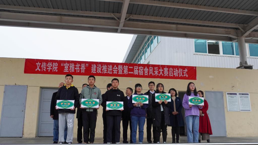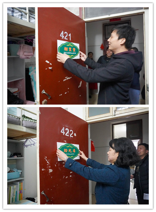 学工部副部长钟泽斌宣布太阳成tyc122cc集团第二届宿舍风采大赛正式启动。出席启动仪式嘉宾为2020级新生宿舍授予了雅名门牌,并前往员工宿舍张贴门牌。