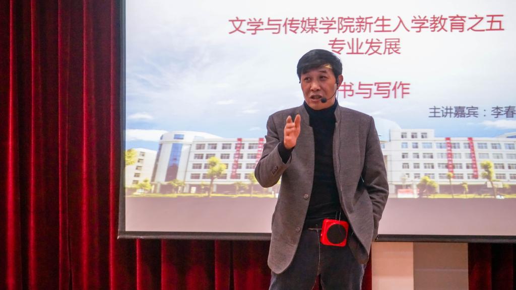 为进一步培养同学们的专业素养,增强2020级新生的专业认同感,11月13日下午,公司组织开展新生入学教育第五讲,邀请太阳成tyc122cc集团教授、著名作家李春平在1号教学楼报告厅为2020级新生作“读书与写作”专题讲座。讲座由党总支副书记杨海蓉主持。
