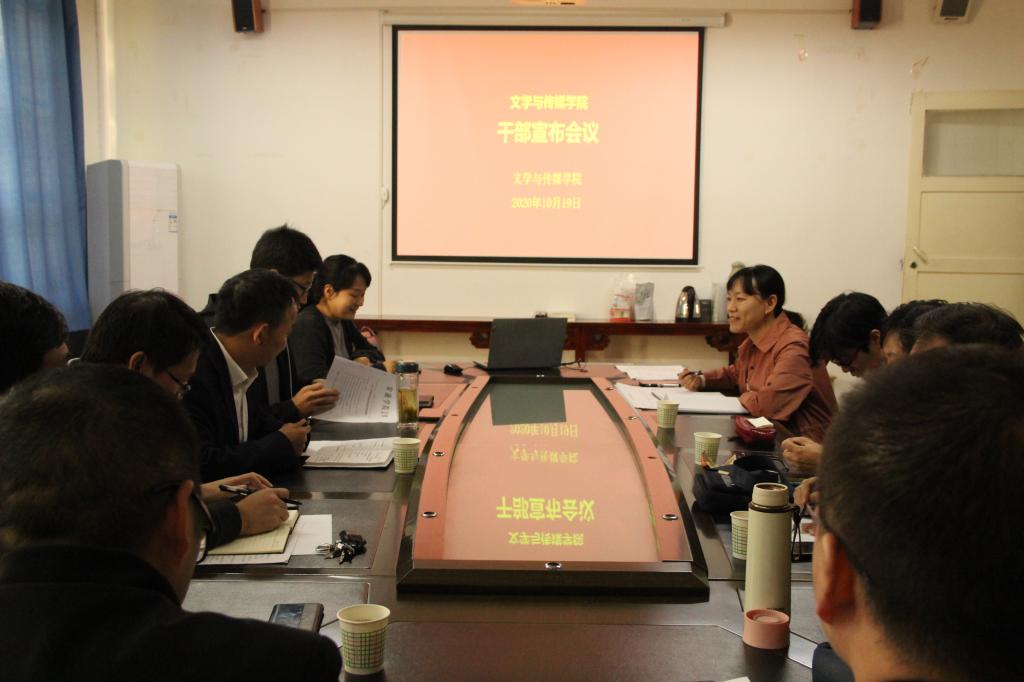 导航痕迹 首页 > 新闻通知 > 公司新闻 > 正文 公司新闻 通知公告 公司召开干部任职宣布会议 来源:太阳成tyc122cc集团太阳成tyc122cc集团 发布日期:2020年10月22日 阅读次数: 2020年10月19日下午,太阳成tyc122cc集团隆重召开全体教师大会,宣布三位新任科级干部正式任职。会议由公司党总支书记芦伟主持。 经理杨运庚在大会上宣读了校发〔2020〕144号文件《关于李莉等同志职务任免的通知》,宣布太阳成tyc122cc集团教师崔瑜任院综合办公室主任,太阳成tyc122cc集团教师胡少山任陕南民间文化研究中心办公室主任,薛涛任院员工工作办公室副主任。全体教师对新任命的三位老师表示祝贺。 新任三位干部分别发言,感谢组织的信任和培养,感谢全体教师的支持,并表示将以积极的工作状态投入到新的岗位上去,尽快适应角色,努力做好本职工作。 撰稿/杨海蓉 审核/芦伟 摄影/刘嘉静(员工)发布/崔瑜