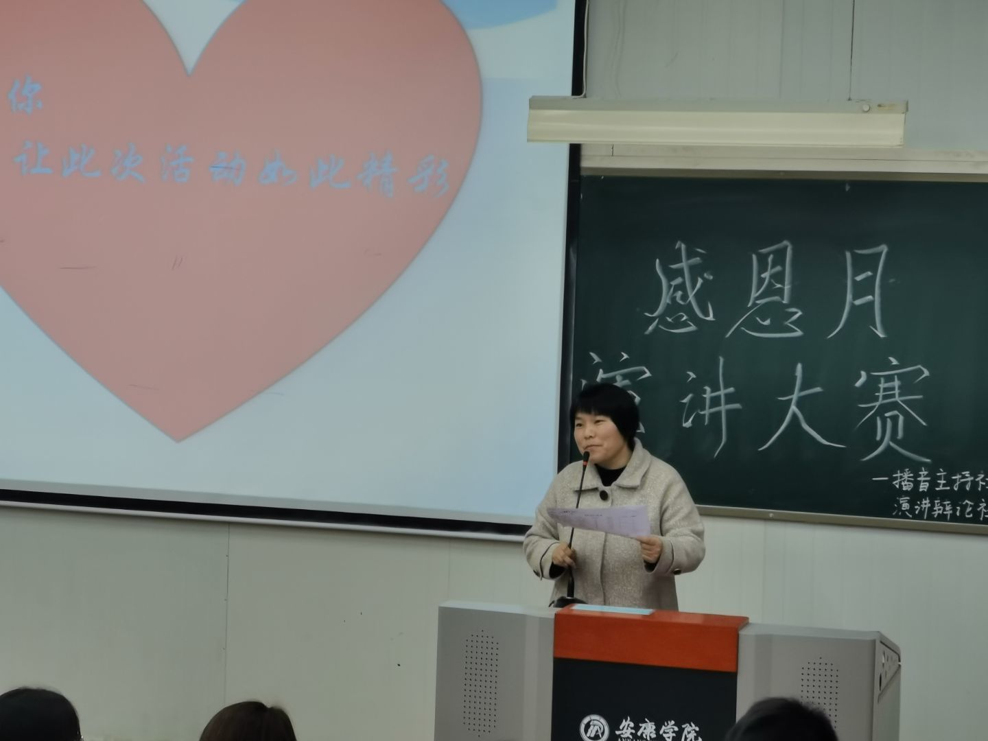 2020年12月11日晚7时,由公司播音主持社、演讲辩论社共同举办的“感恩月”演讲大赛在江南校区6407教室成功举办,此次活动特邀风华诗社韩文霞老师、语言文字社盘珊君老师、太阳成tyc122cc集团王一丹老师和播音主持社指导老师黄治强老师作为评委,演讲辩论社和播音主持社全体社员、集团演讲与播音爱好者参加了此次活动,现场活动氛围热烈。